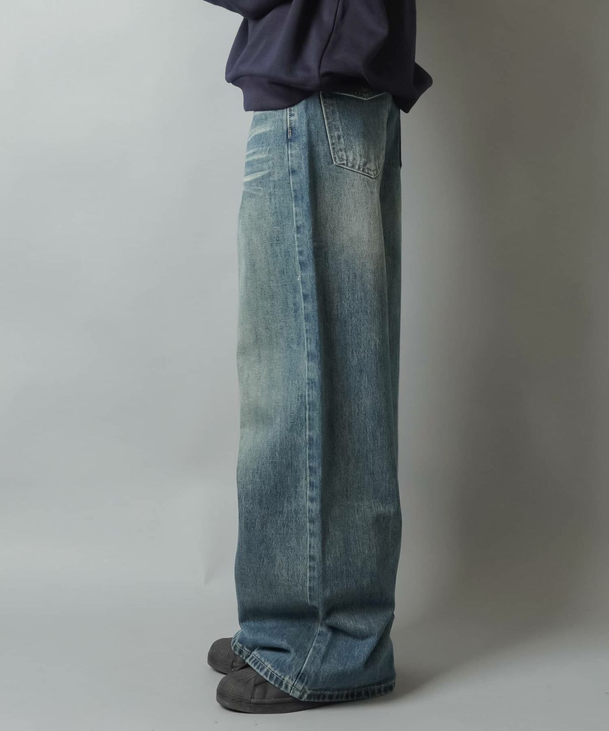 デニムワイドパンツ/ヒゲ加工/2サイズ展開