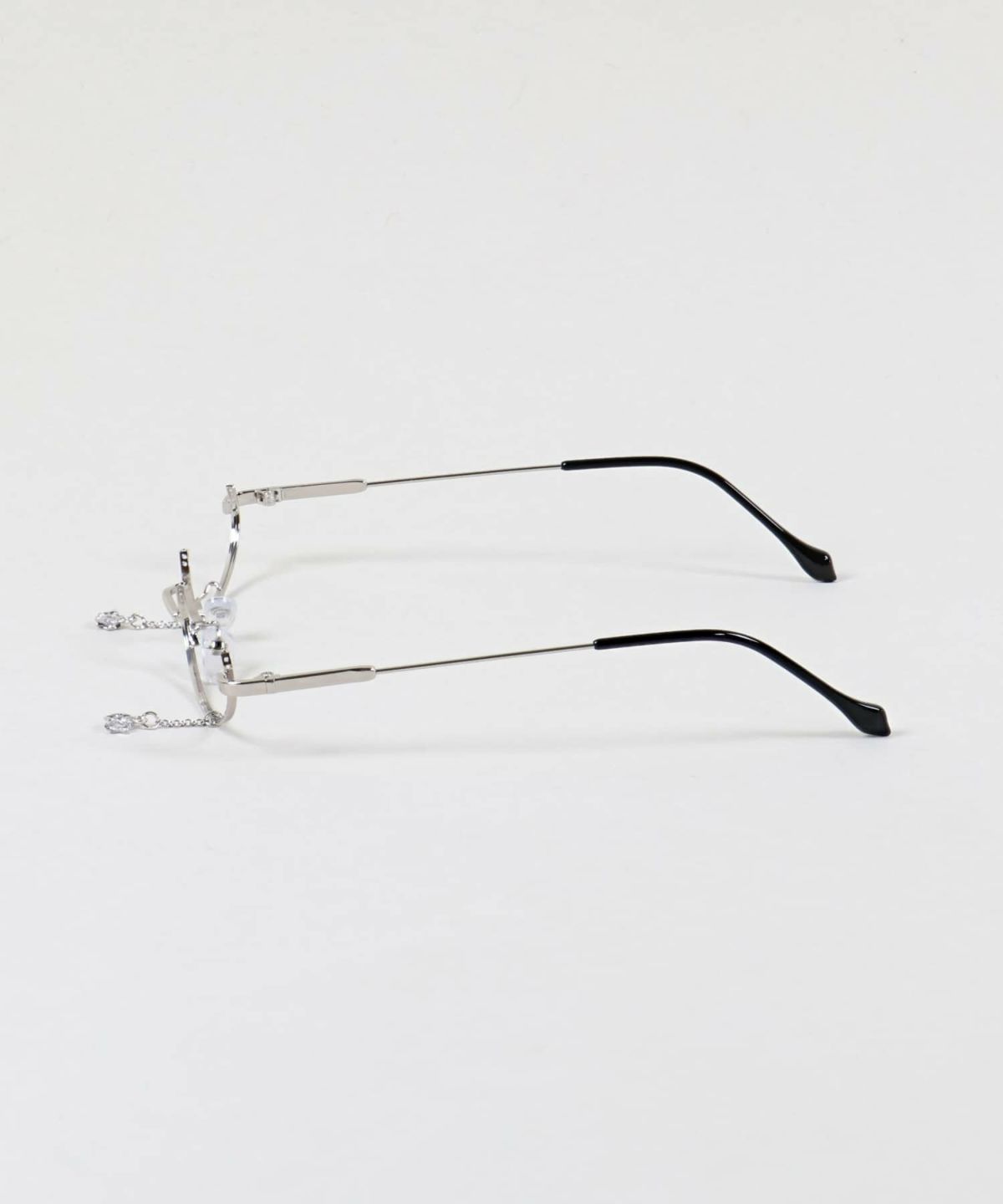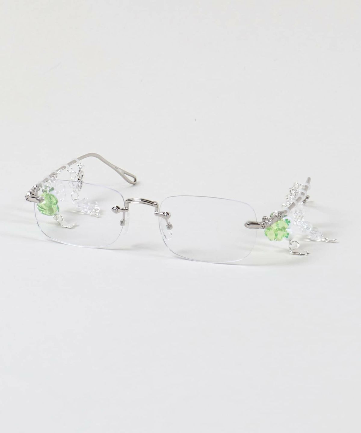 チャーム付きリムレスメガネ/フレームレスメガネ/サイドビーズ