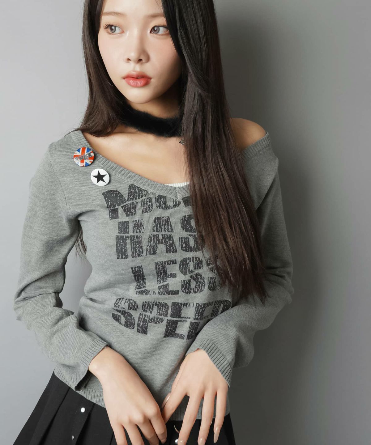 Vネックで色気盛れ💘 長袖Vネックニット/ロゴ/缶バッジ付き