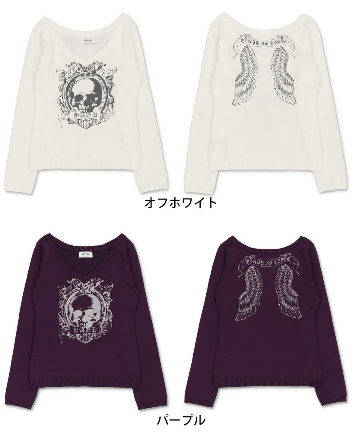 色気も強さも盛れる💀 長袖Vネックニット/スカル/バックウイング