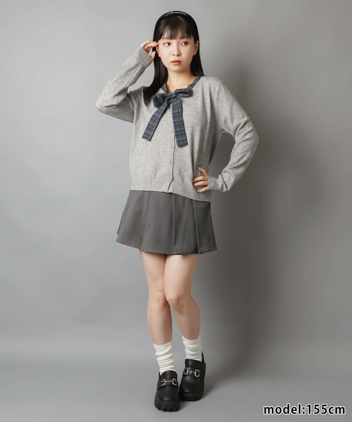 リボン取り外し可能🎀 襟付きカーディガン/バイカラーリボン