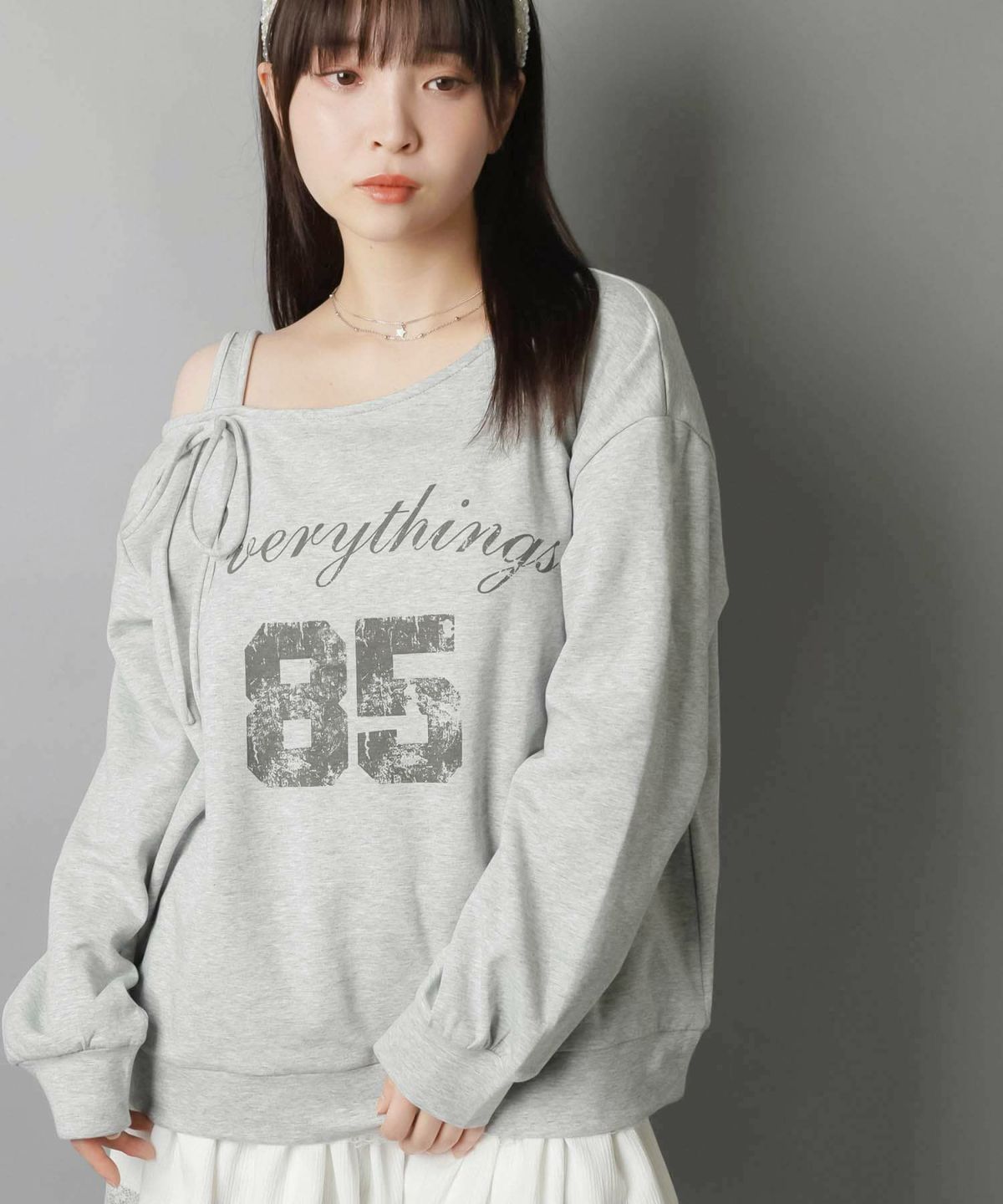 ワンショルダー裏毛スウェット/リボン