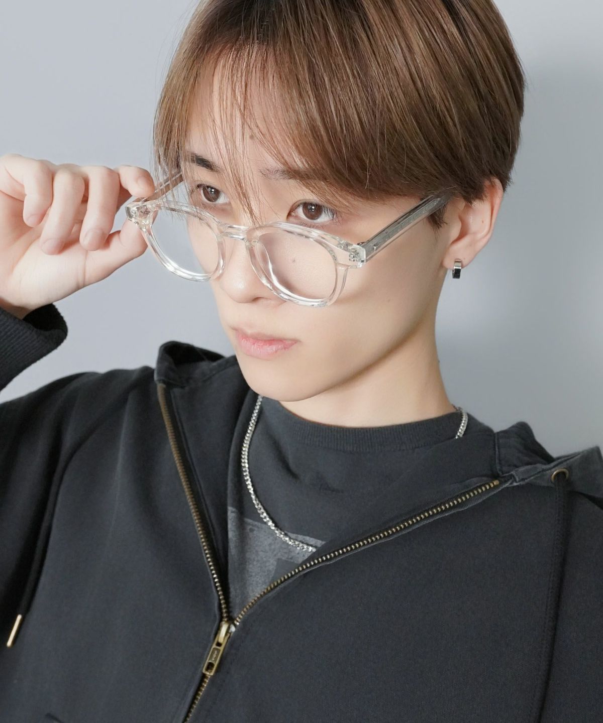 涙みたいなチャームがカワイイ! 伊達メガネ/ハーフリム/セミリムレス/チャーム付き