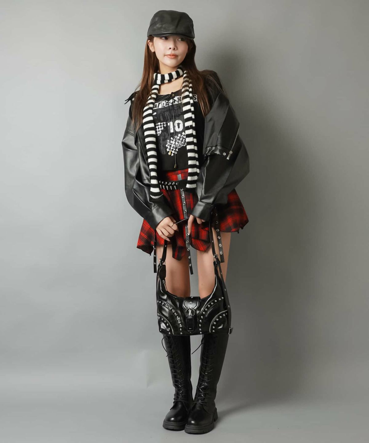 2サイズ展開/チェック柄イレヘムミニスカート/スタッズベルト/インナーパンツ付き/#ロマンスパンク