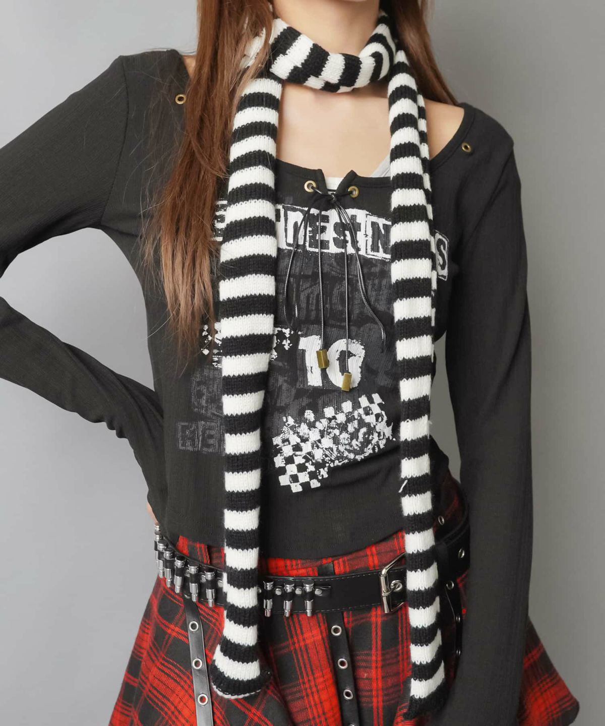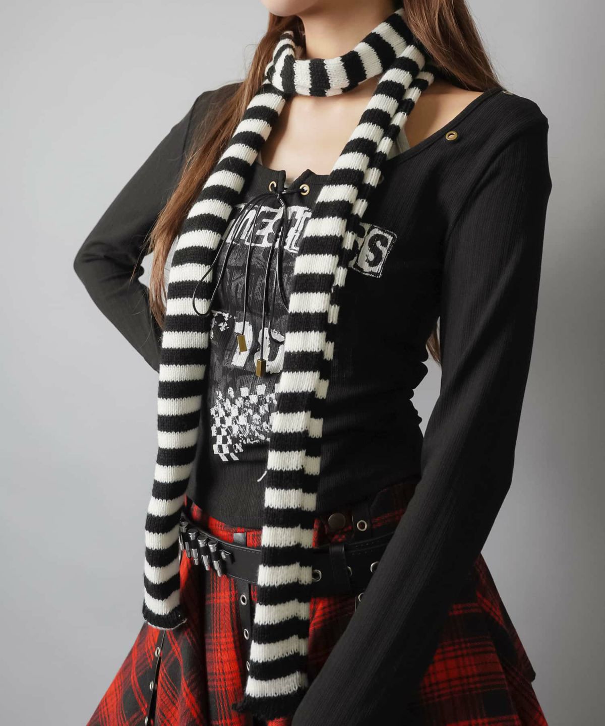 ボーダーニット細スカーフ/#ロマンスパンク
