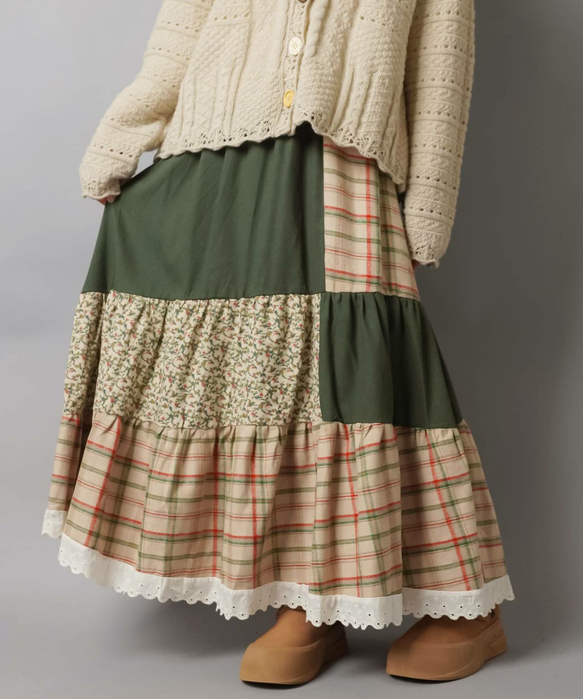 【61%OFF】パッチワークロングスカート/チェック柄/小花柄/#NEO森ガール
