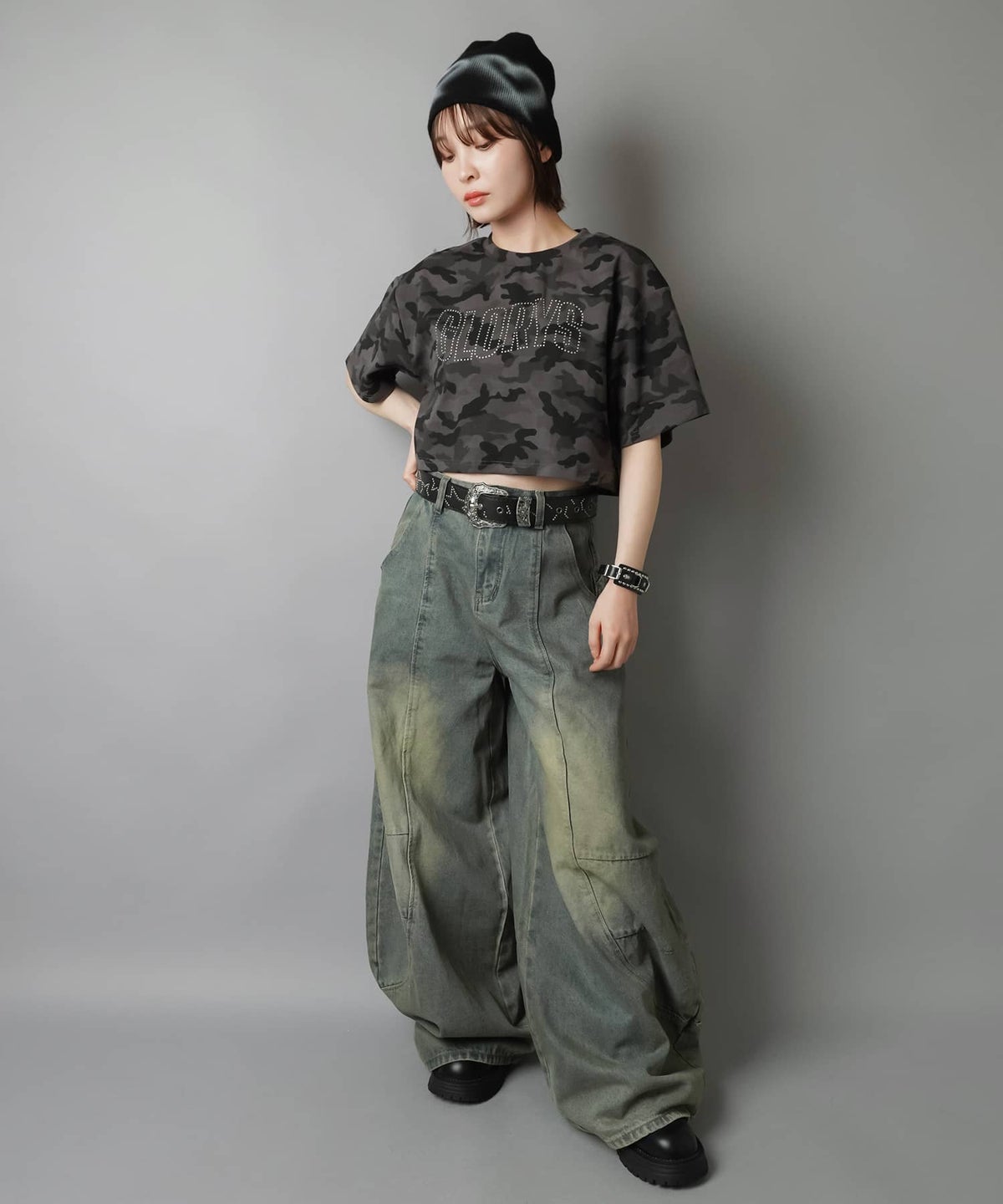 合皮ブレスレット/スタッズベルトバックル