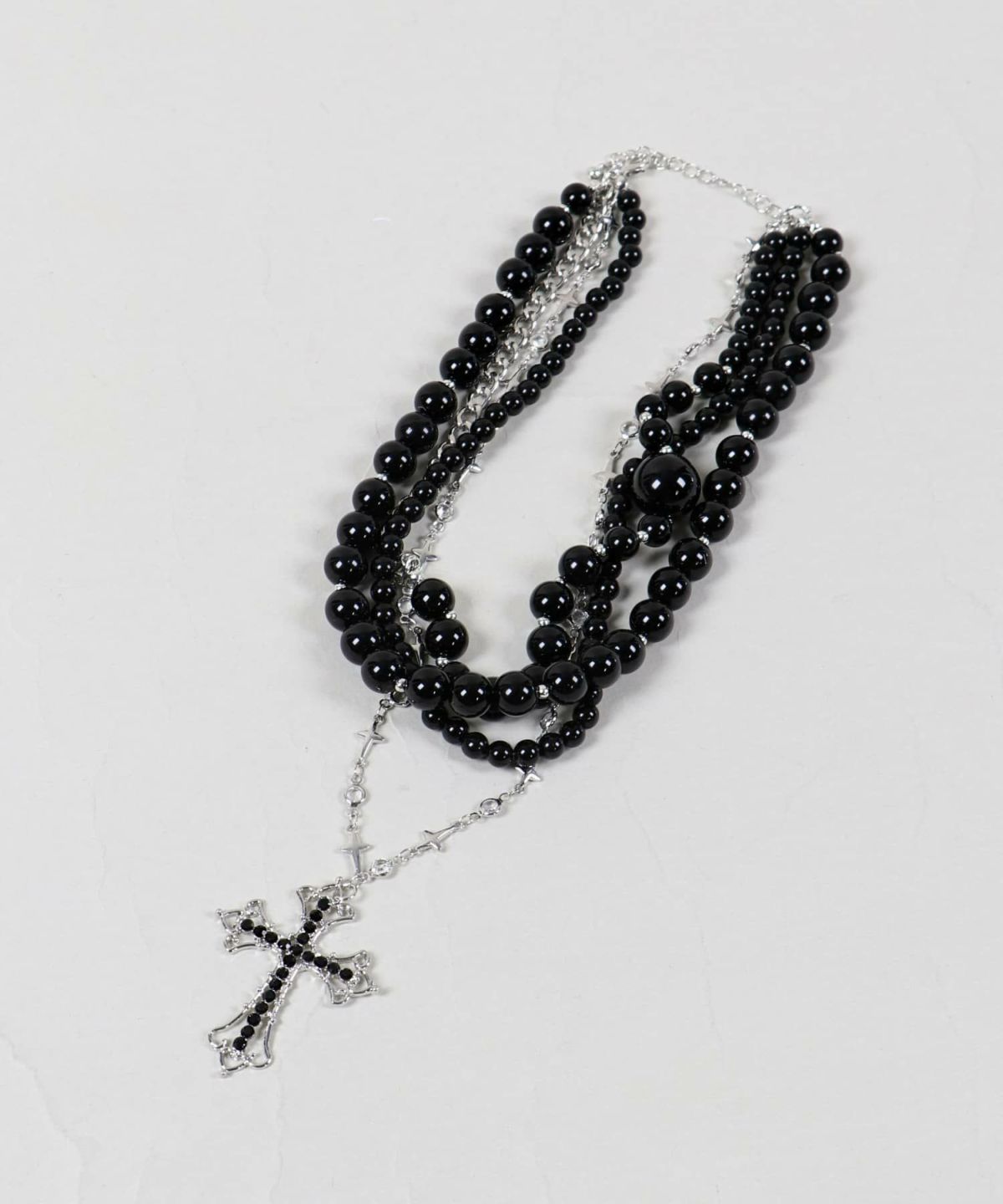 4連ネックレス/ブラックミニクロス<メール便対応>