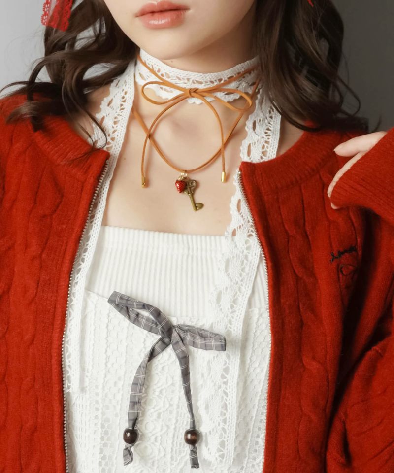 2連レース紐チョーカー/バタフライ/ストロベリーキー/#NEO森ガール<メール便対応>