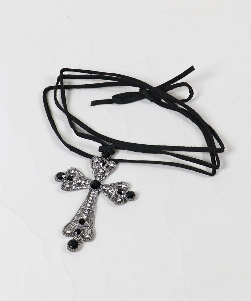 紐チョーカー/ブラックビッグクロス<メール便対応>