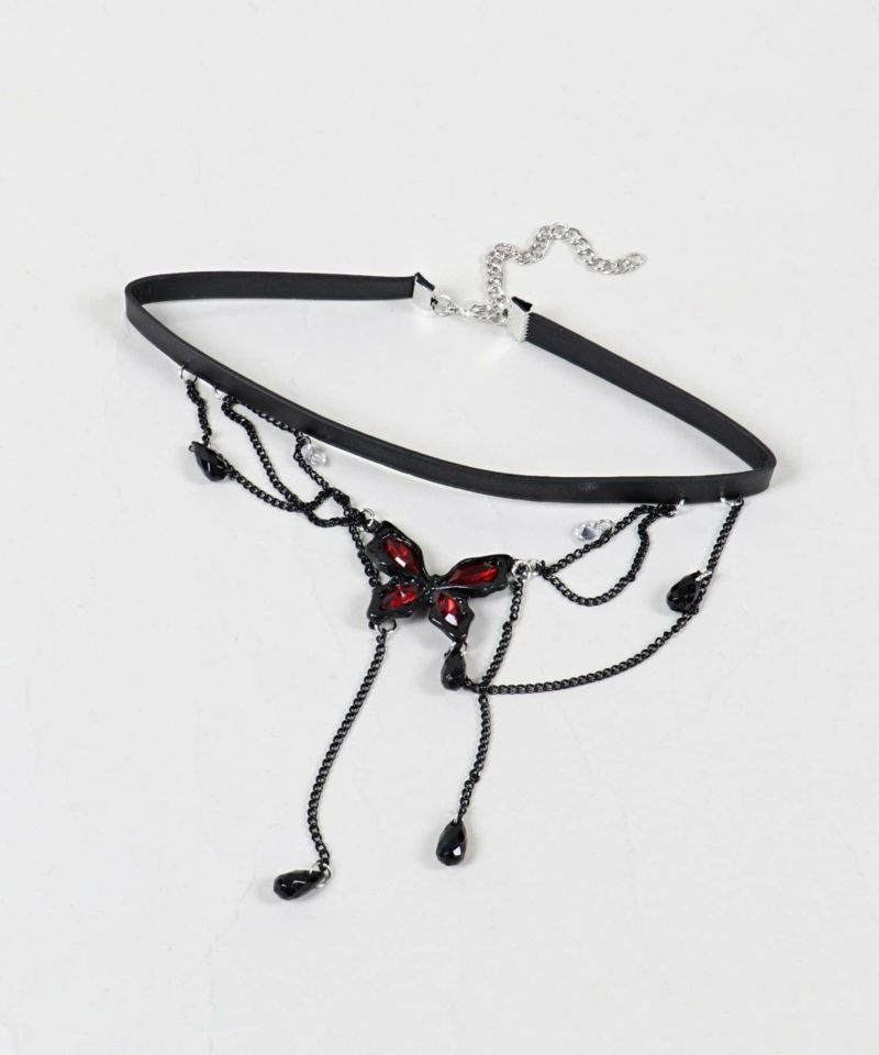 合皮チョーカー/ブラックチェーン/バタフライ/#ロマンスパンク<メール便対応>