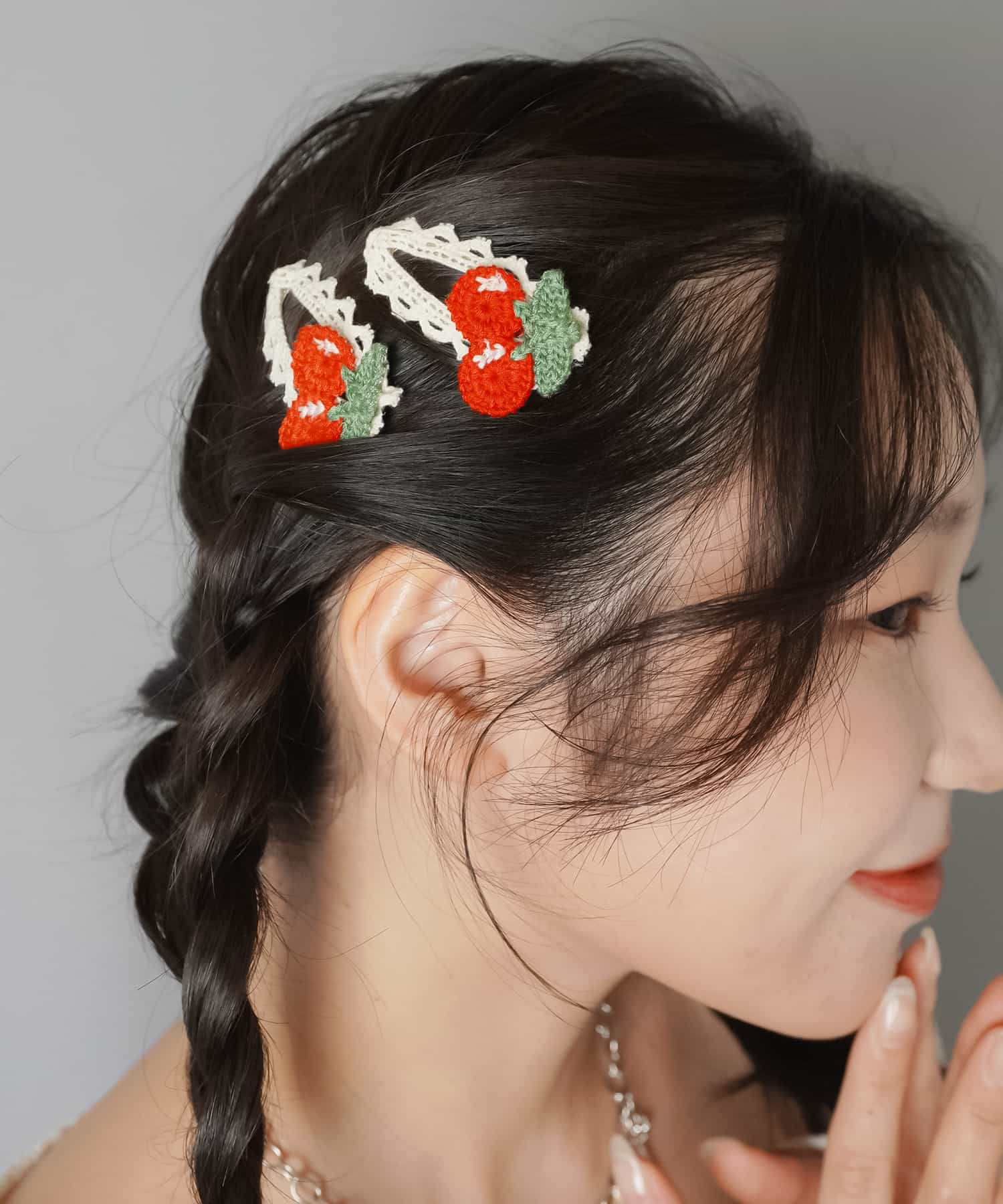 【63%OFF】ニットヘアクリップ/チェリー/ヘアピン/2個セット#NEO森ガール<メール便対応>