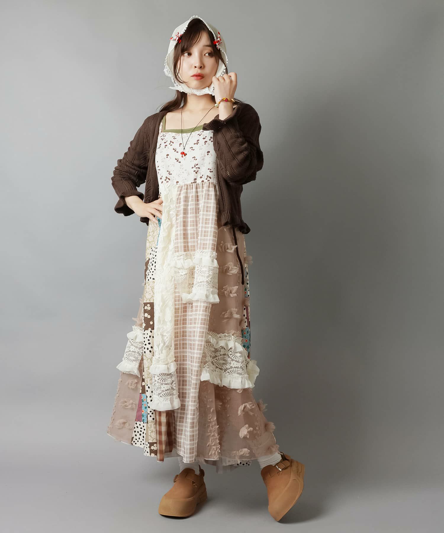 ヘッドドレス/パッチワーク/フラワーボタン/#NEO森ガール