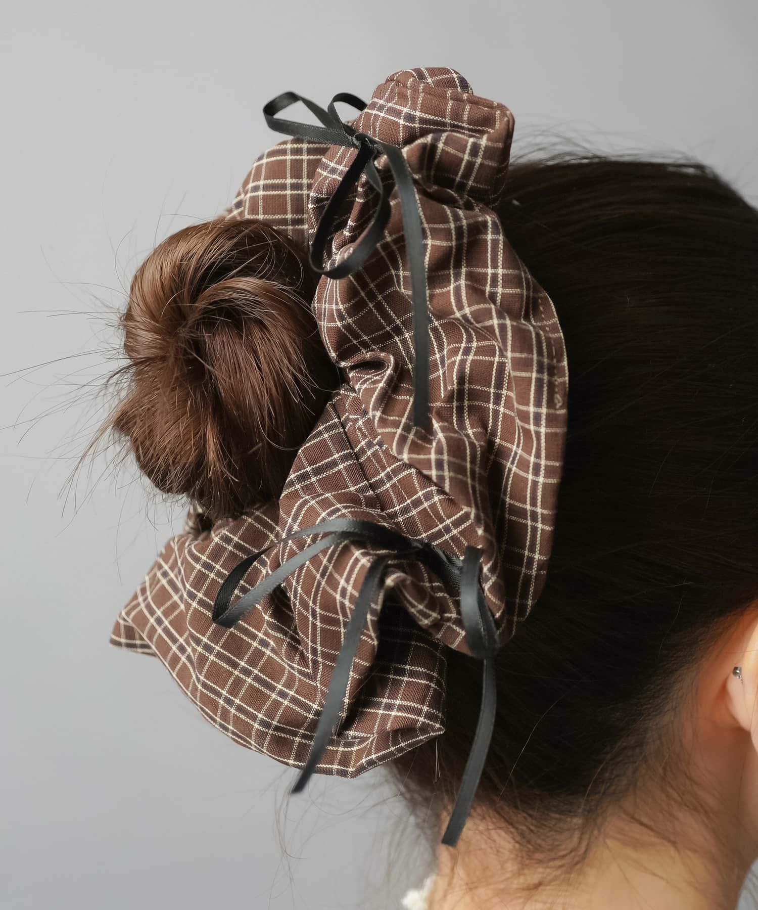 ビッグリボンヘアクリップ/バナナクリップ/チェック柄/2個セット