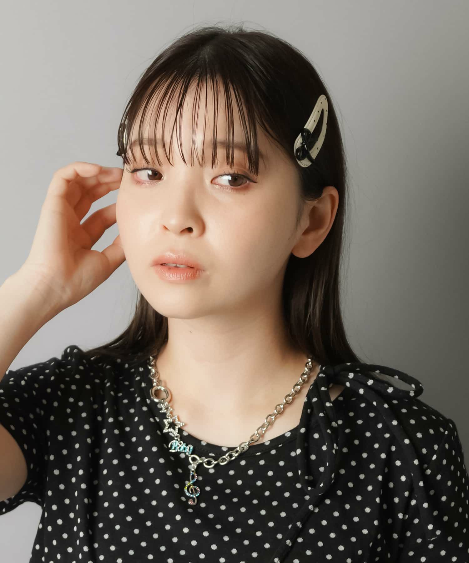 パッチンピン/ヘアピン/ドットサイドリボン/2個セット<メール便対応>