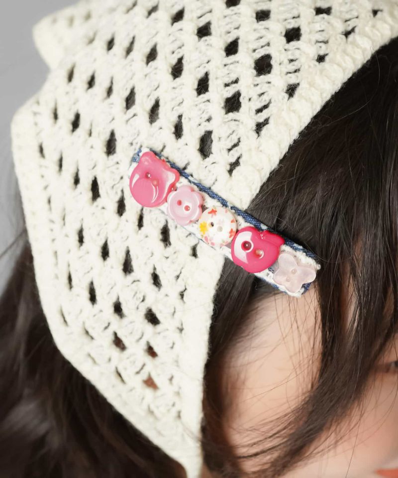 バブーシュカにつけるのが今っぽい♪ 【59%OFF】ボタンヘアクリップ/ヘアピン/デニムライン/#NEO森ガール<メール便対応>