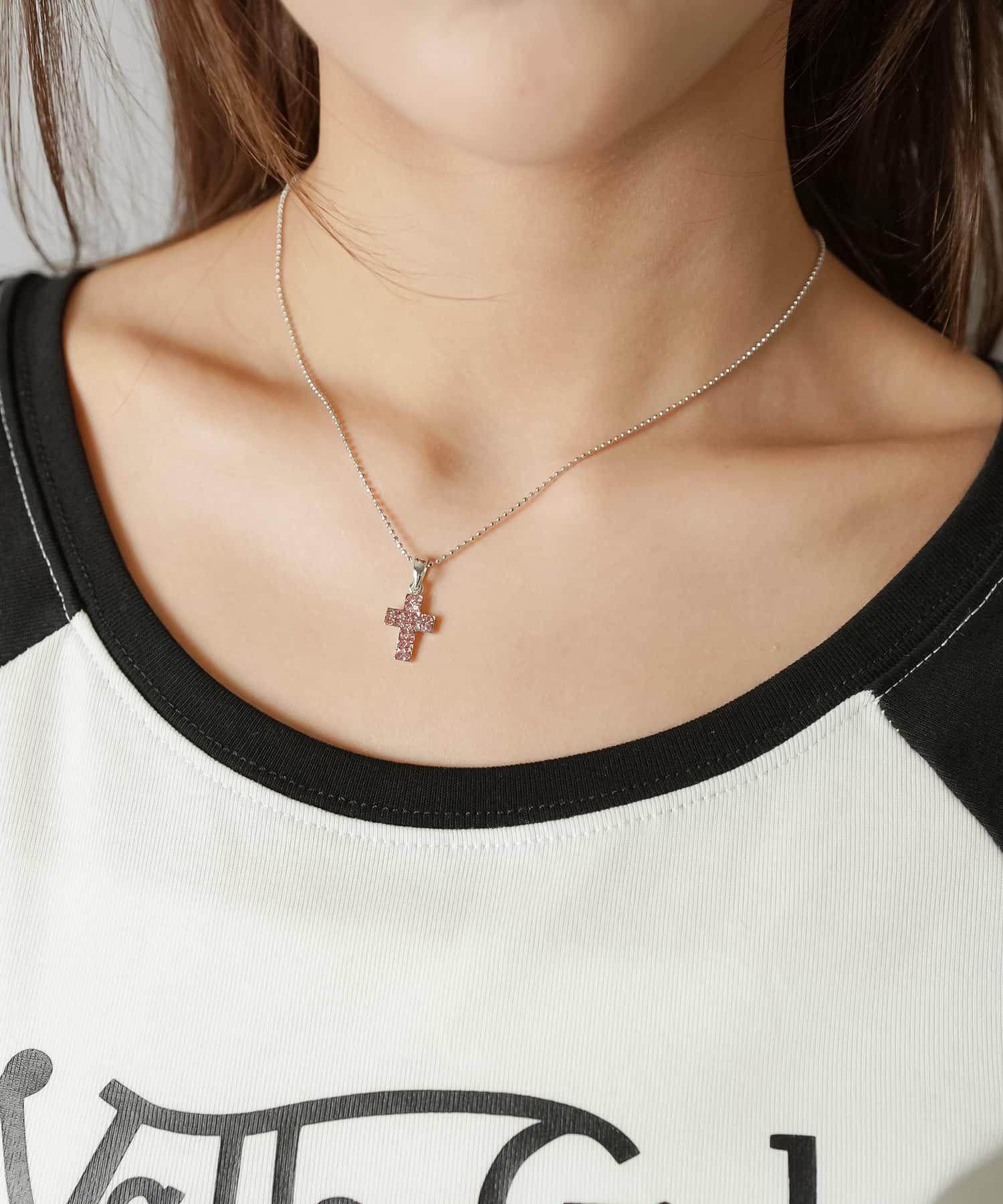 細ネックレス/ラインストーンミニクロス<メール便対応>