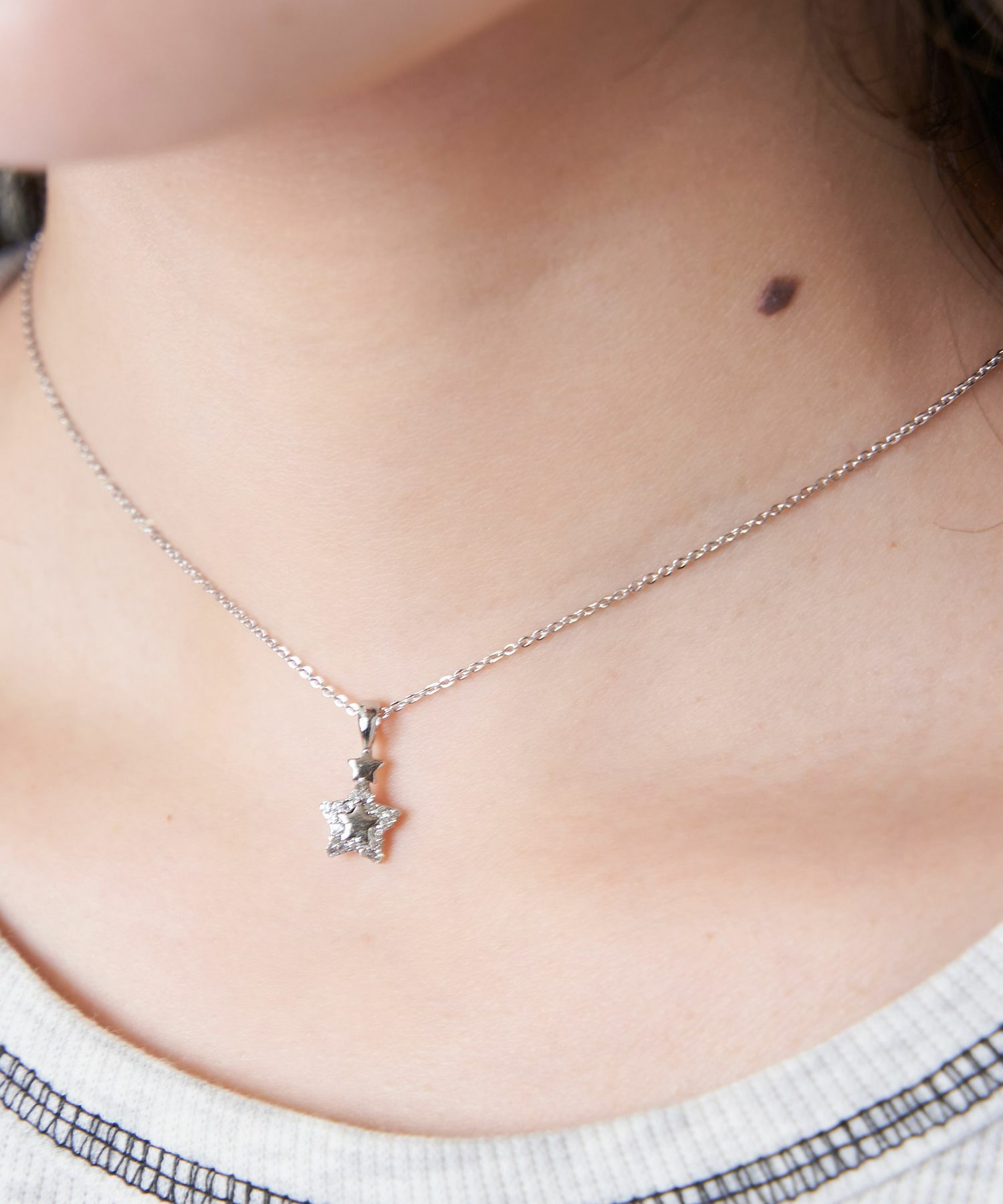 一本付けでも、すでに持ってるネックレスに合わせた重ね付けもおすすめです◎