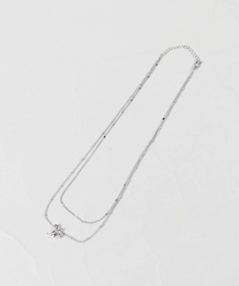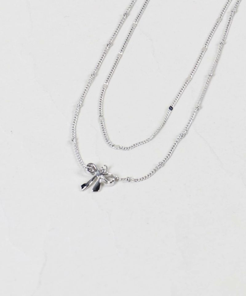 細チェーン2連ネックレス/リボン<メール便対応>