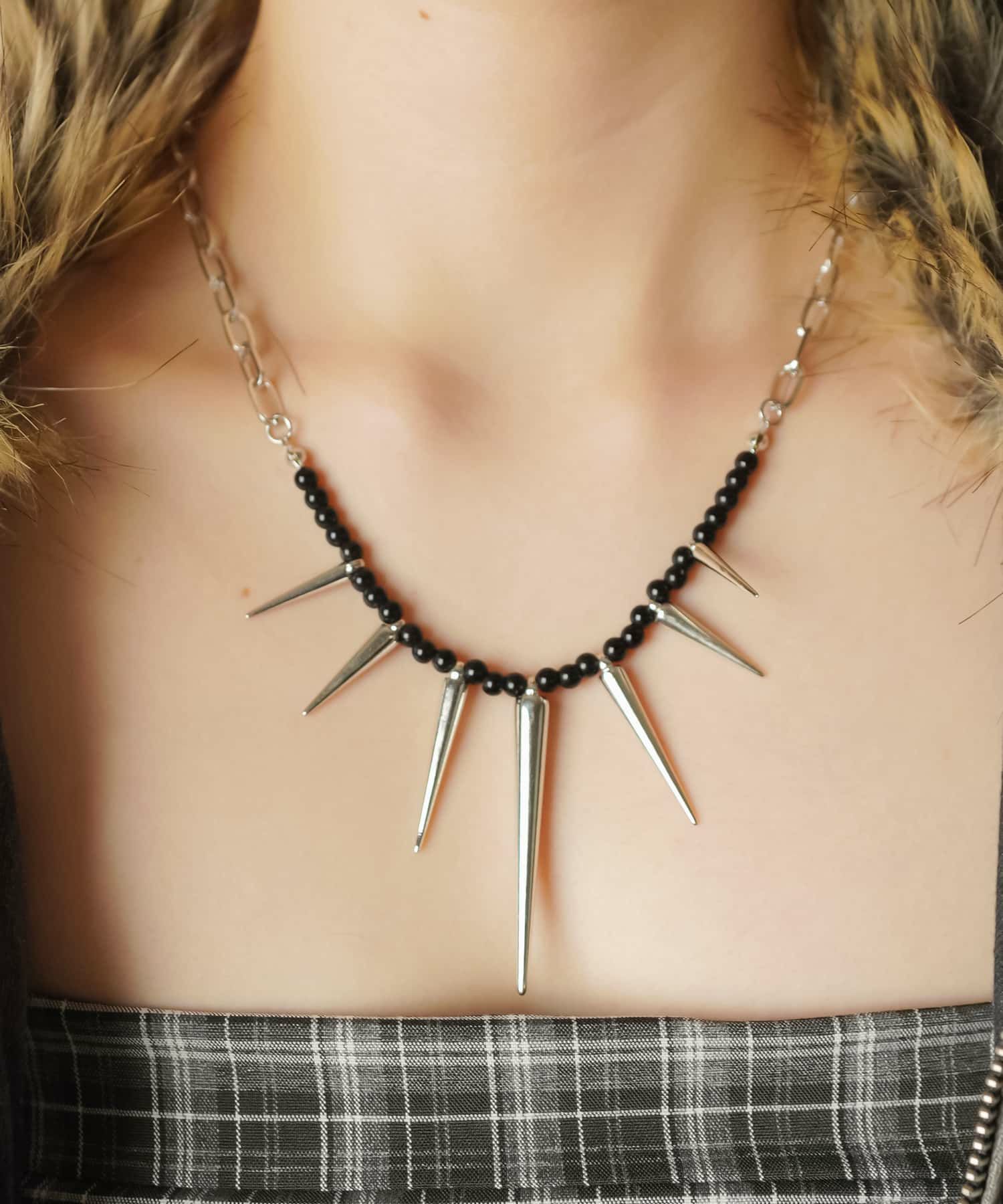 【38%OFF】ブラックビーズネックレス/トゲ/#ロマンスパンク<メール便対応>