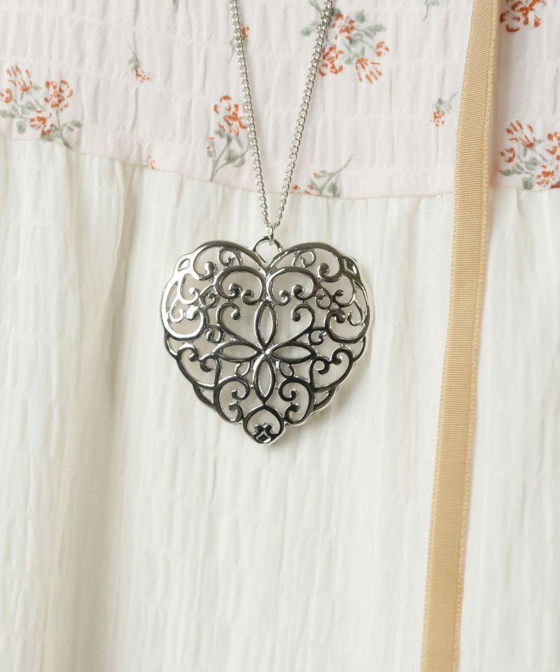 【38%OFF】メタルネックレス/ハート/模様<メール便対応>