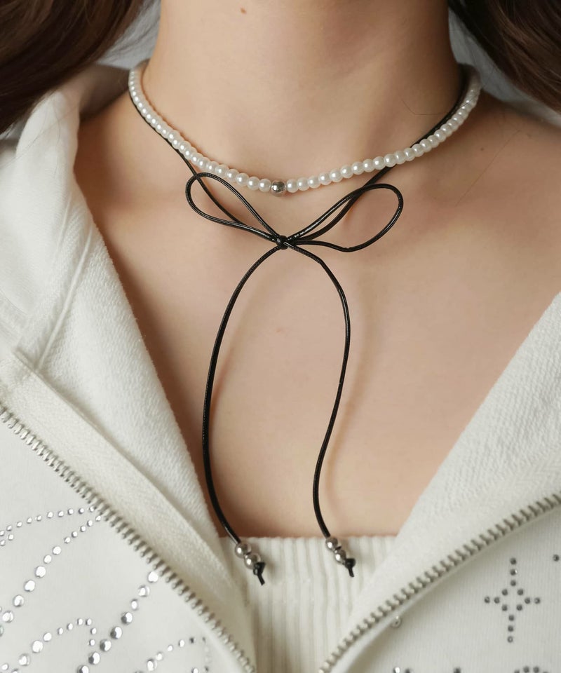 【38%OFF】紐ネックレス/2連リボン<メール便対応>