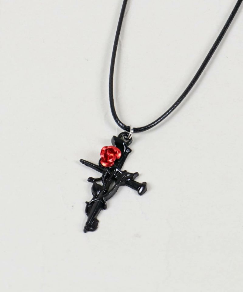 紐ネックレス/ブラッククロス/ローズ<メール便対応>