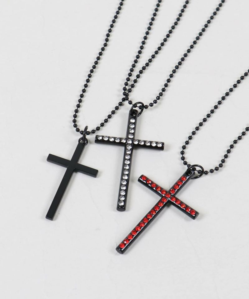 メタルネックレス/ラインストーンクロス<メール便対応>
