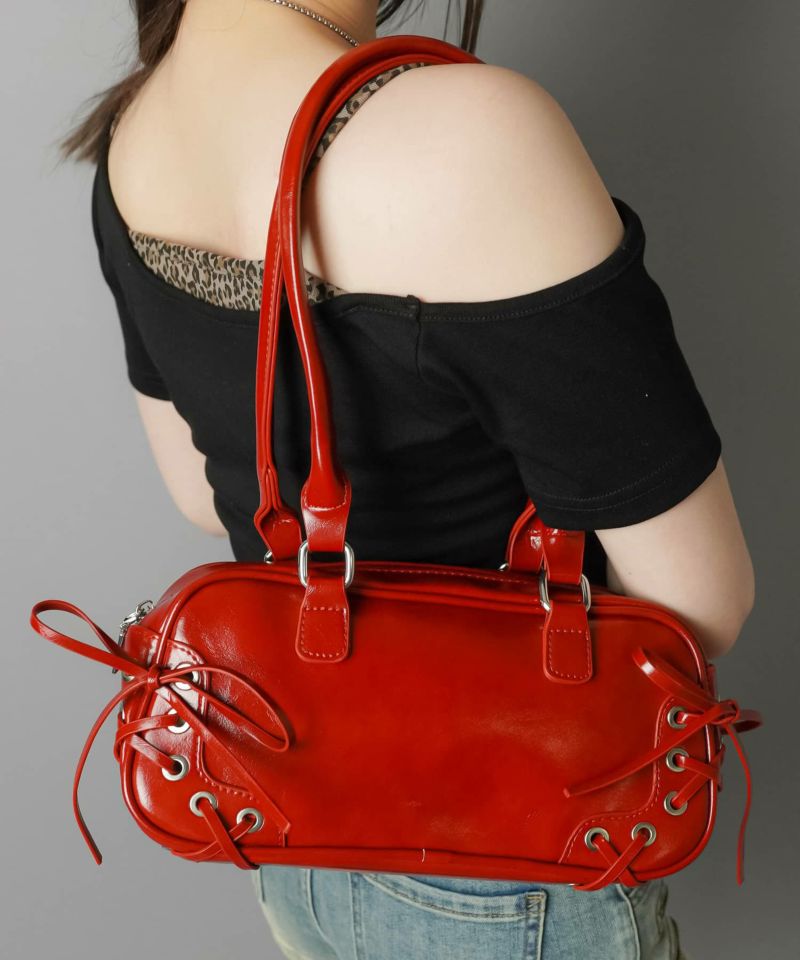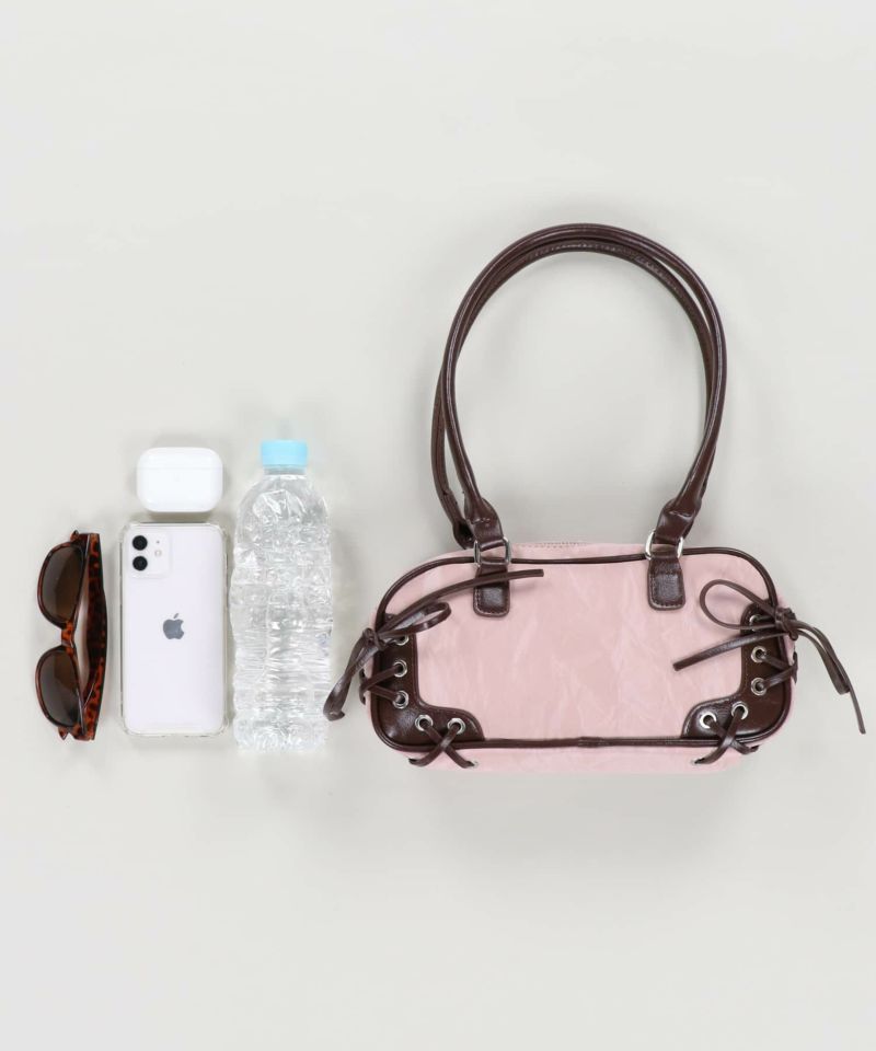 【34%OFF】合皮ボストンバッグ/サイドレースアップ