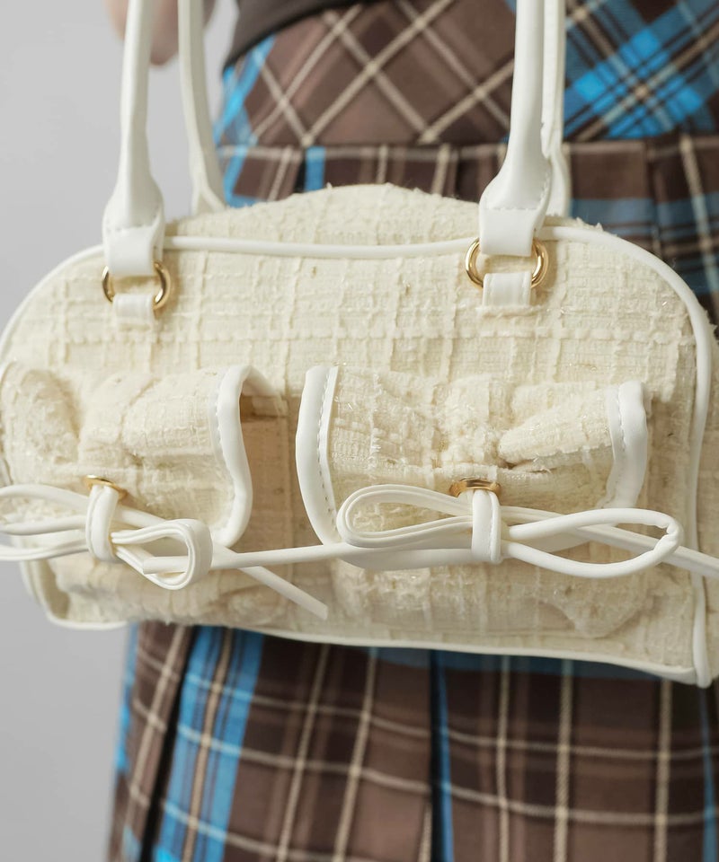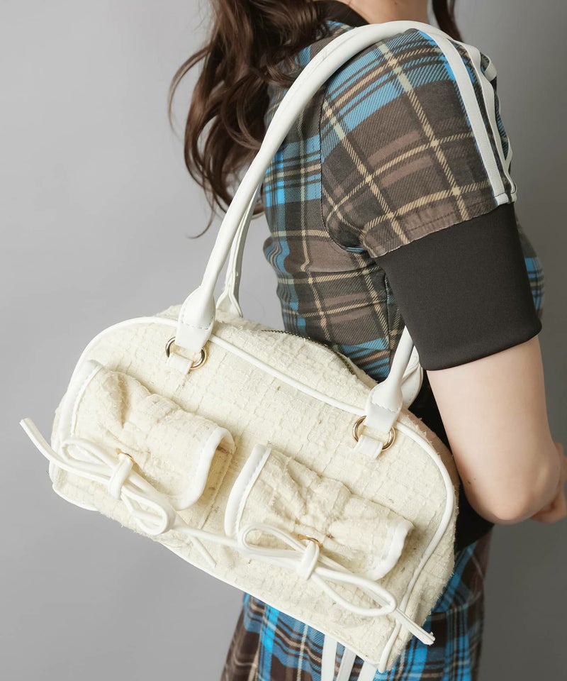 【66%OFF】ツイードハンドバッグ/リボンポケット