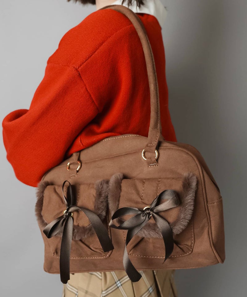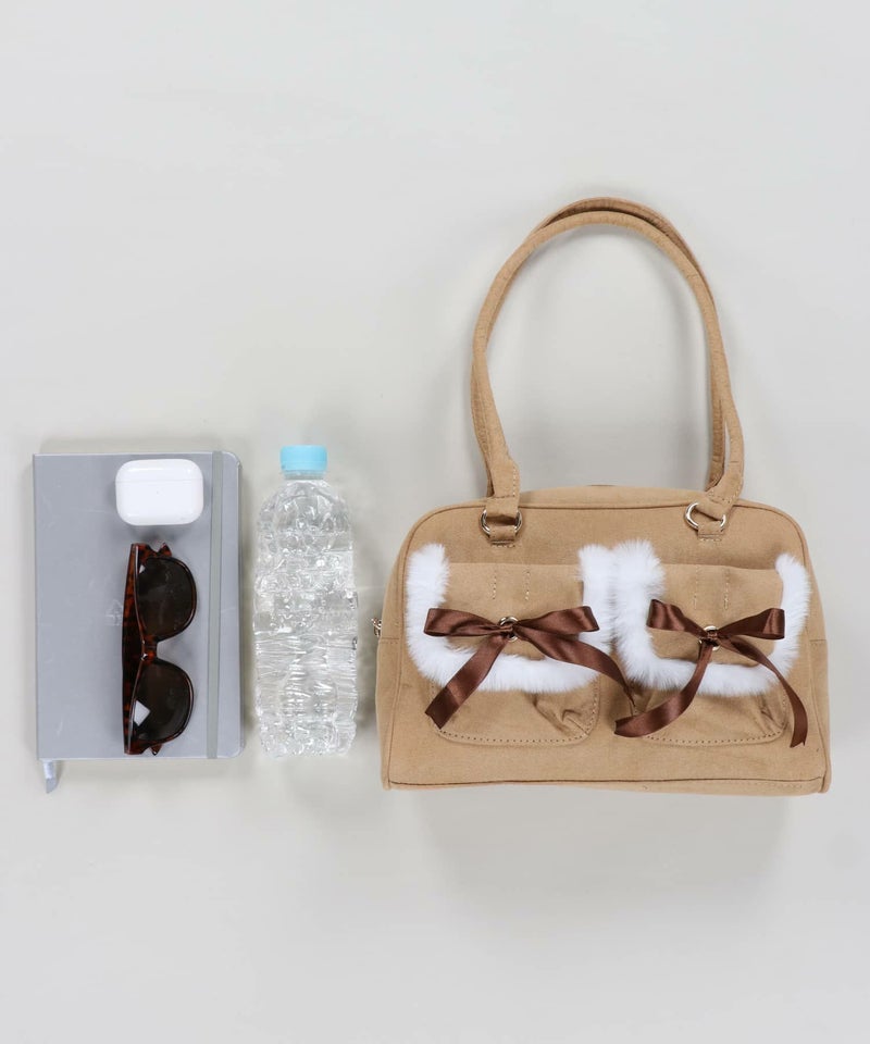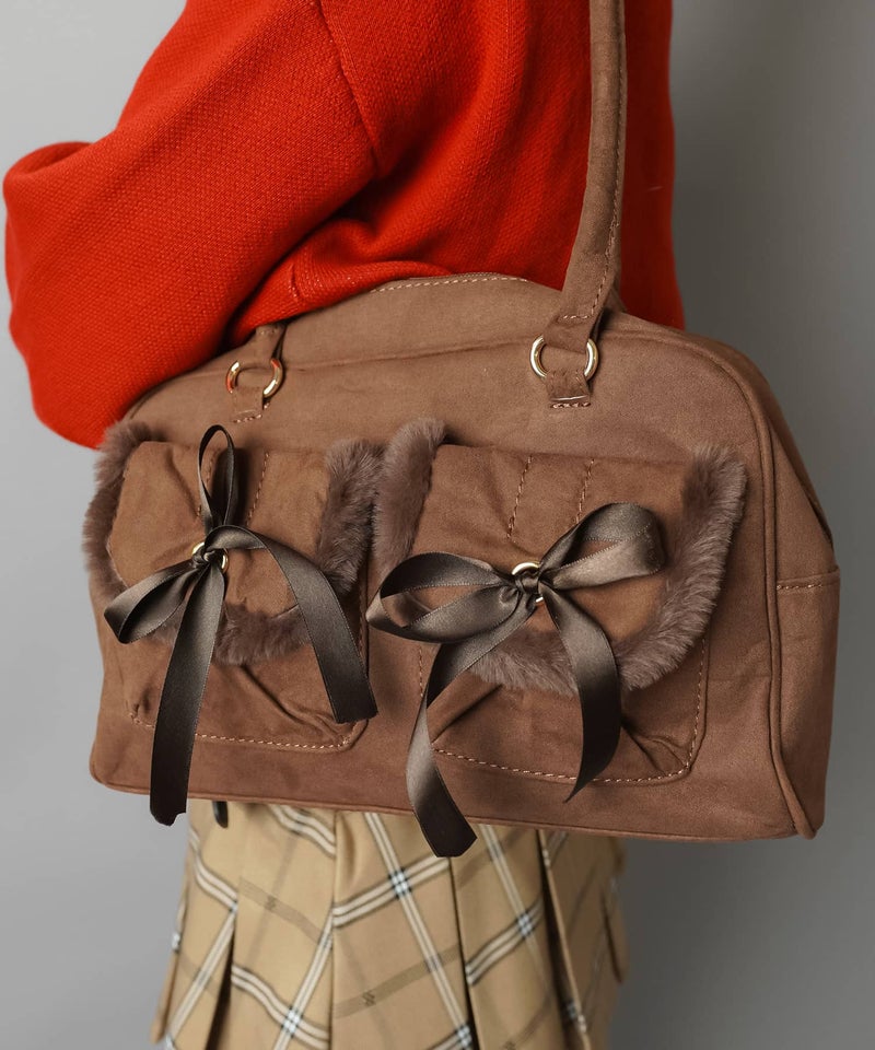【66%OFF】スエードハンドバッグ/リボンポケット