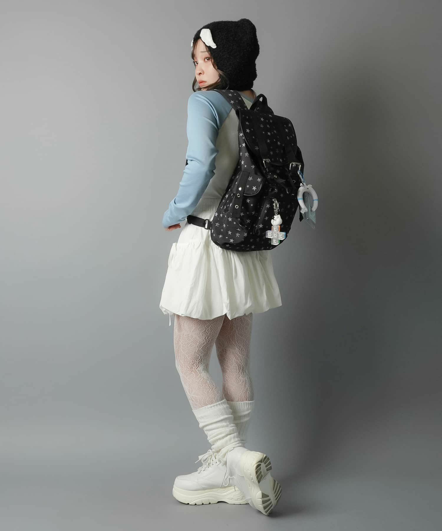シンプルな無地ブラックとスター総柄のピンクとブルーの3色展開。