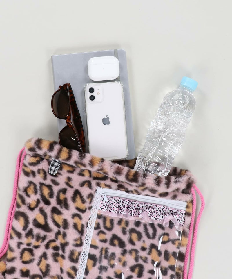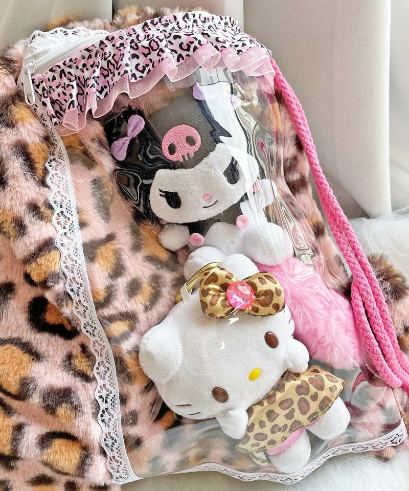 【88%OFF】痛バッグ/クリアポケットバッグ/ナップサック/フェイクファー/ヒョウ柄/ぬい活