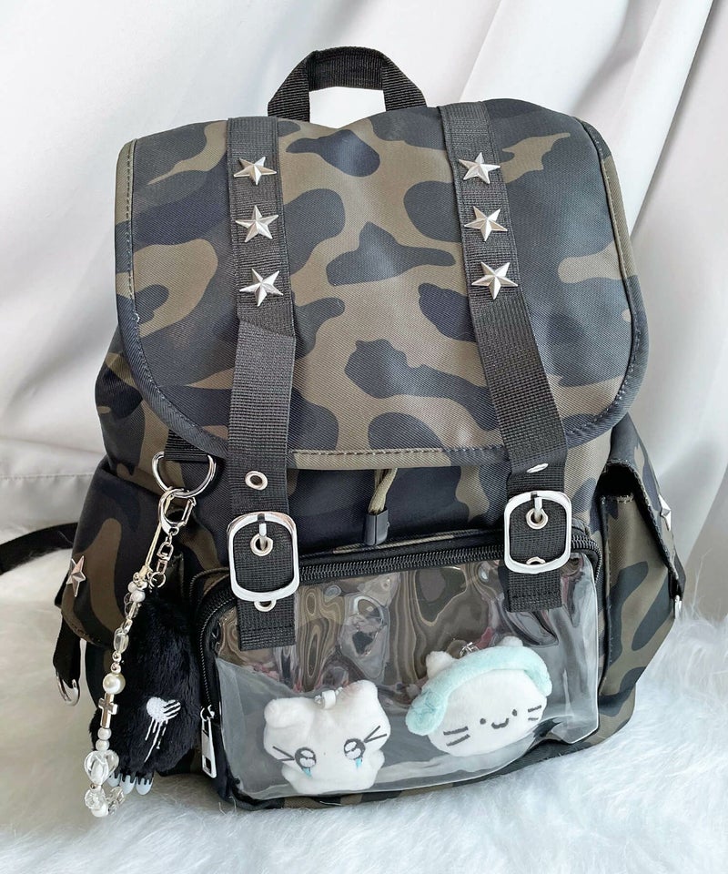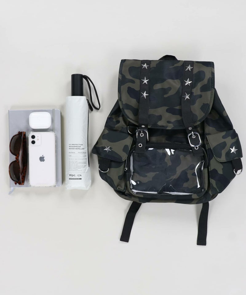 【88%OFF】痛バッグ/クリアポケットバッグ/リュックサック/カモ柄/迷彩柄/ぬい活