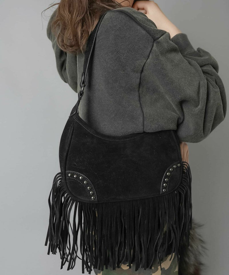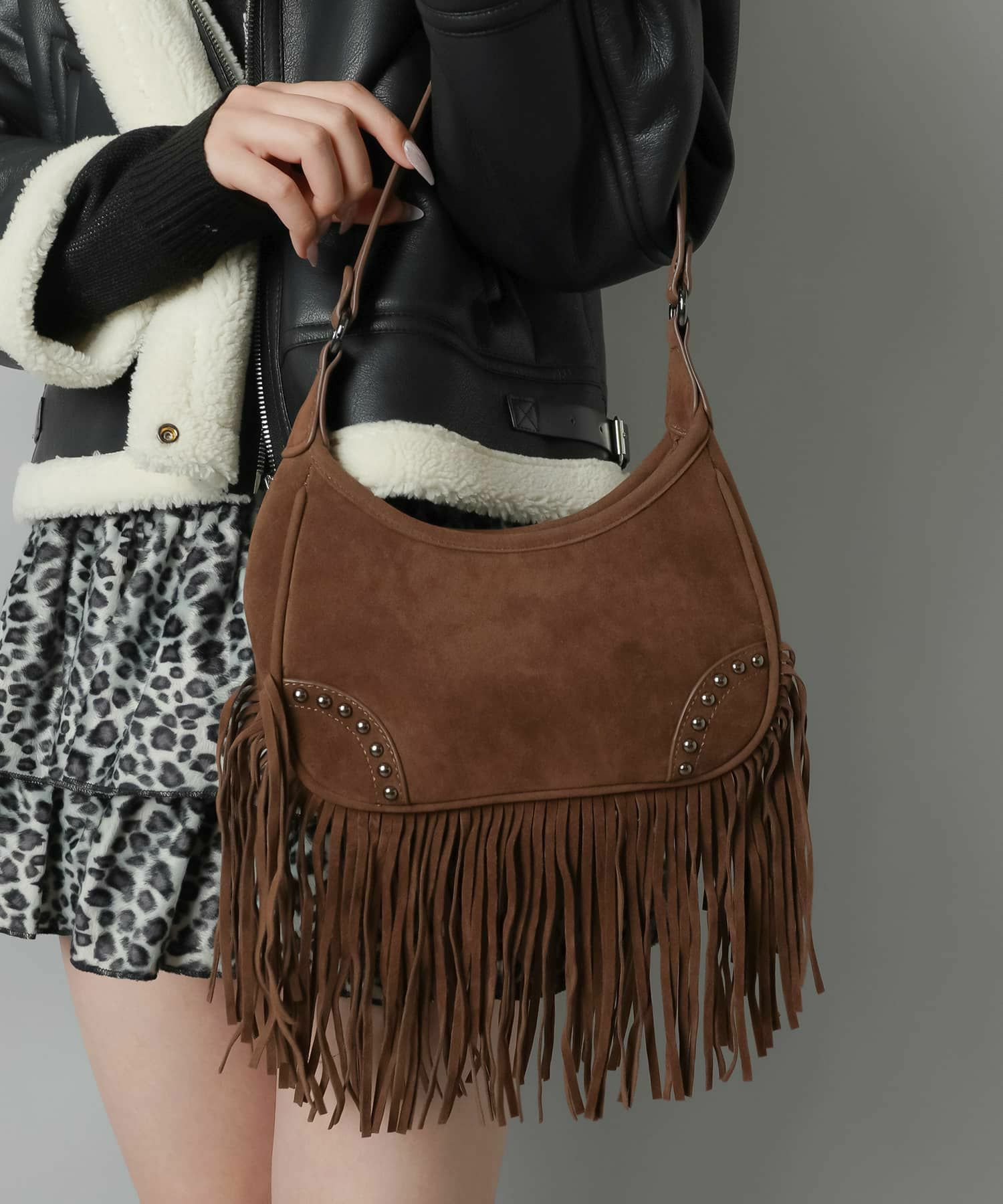 【69%OFF】スエードハンドバッグ/ショルダーバッグ/フリンジ