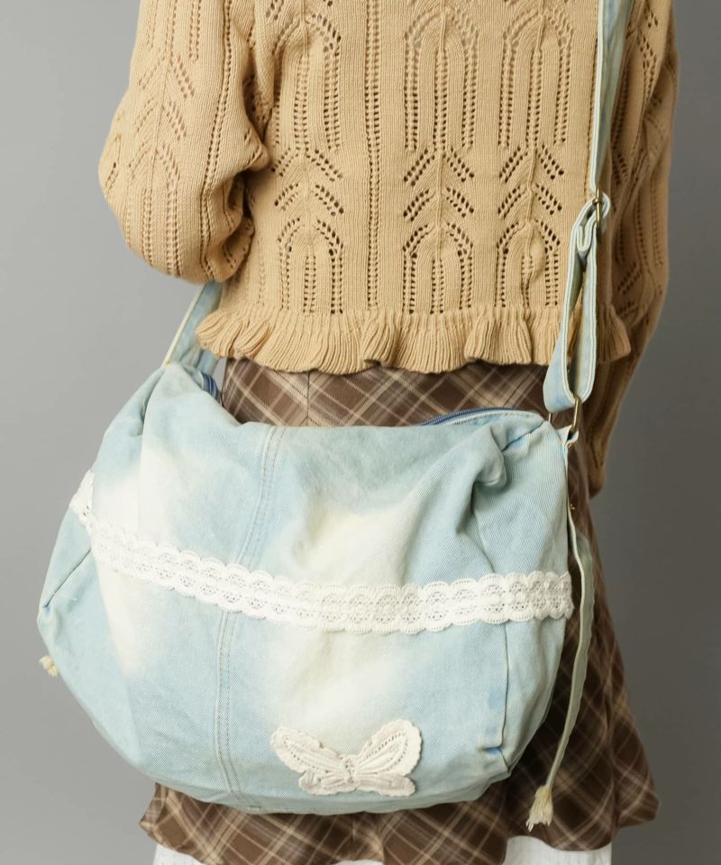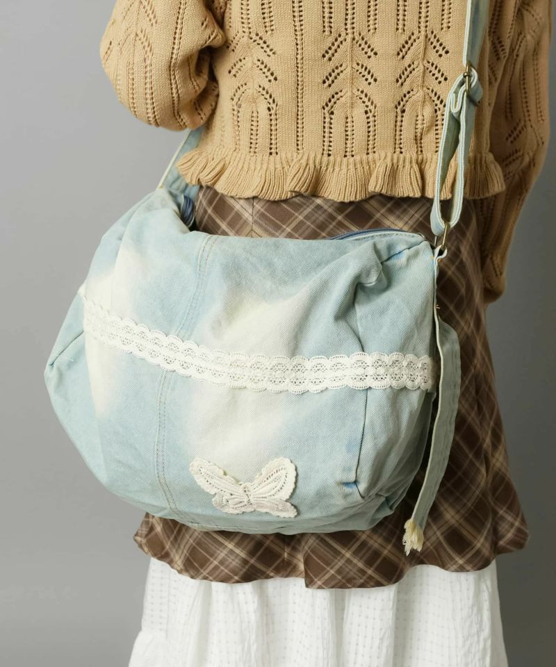 【22%OFF】デニムショルダーバッグ/レースバタフライ/#NEO森ガール