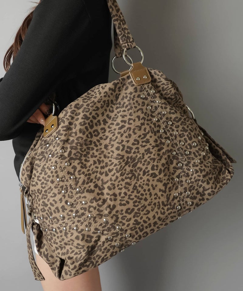 A4サイズ収納可 ヒョウ柄スタッズショルダーバッグ/トートバッグ/レオパード/#ロマンスパンク