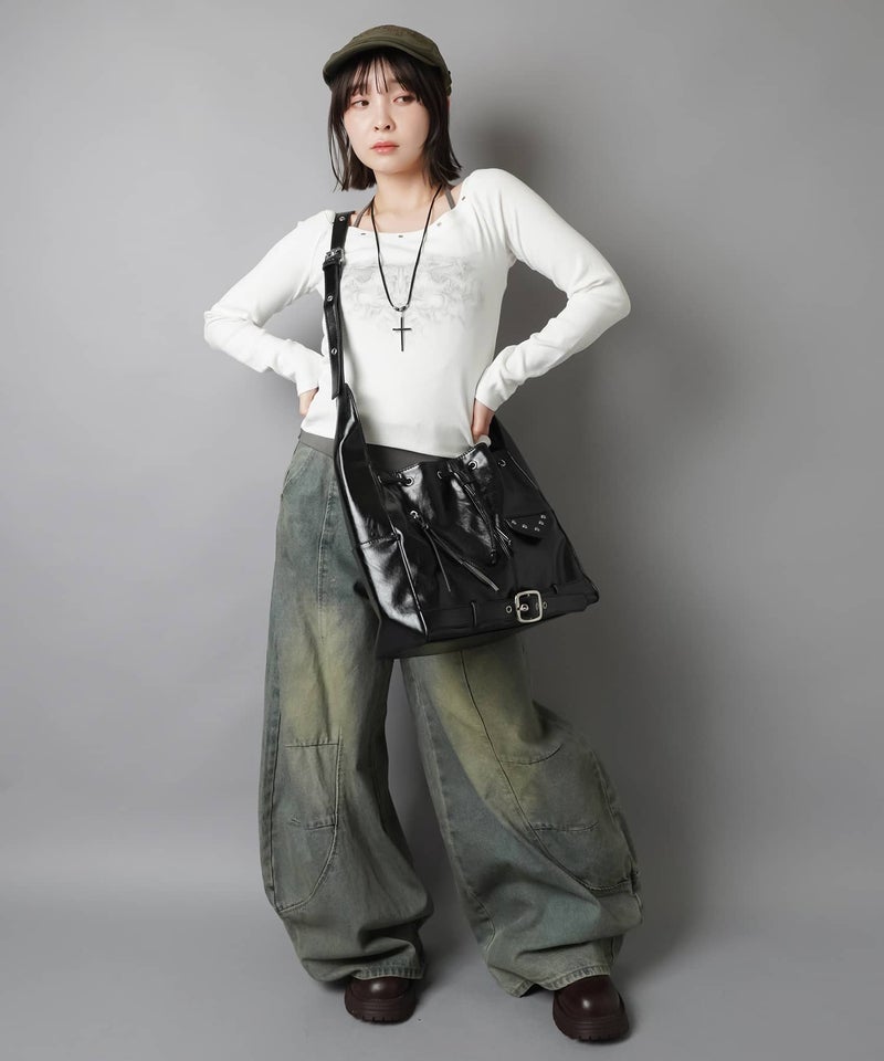 A4サイズ収納可 合皮ショルダーバッグ/スタッズベルト/#ロマンスパンク