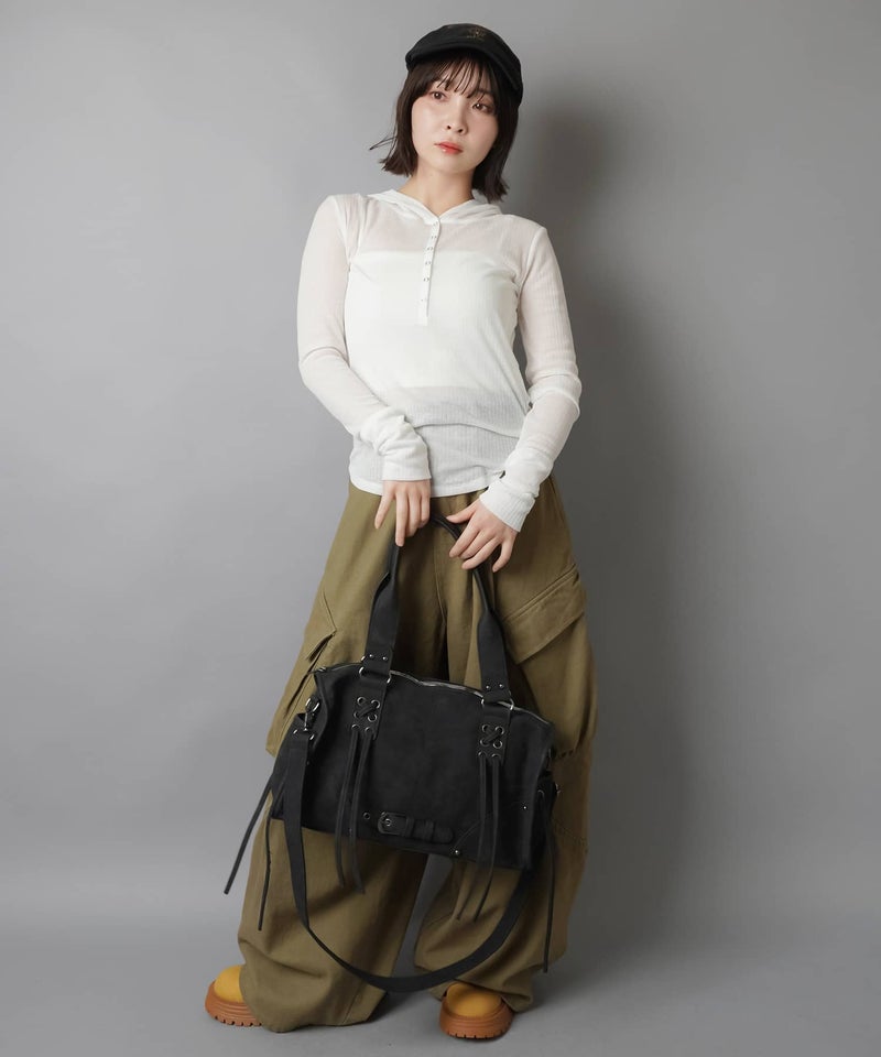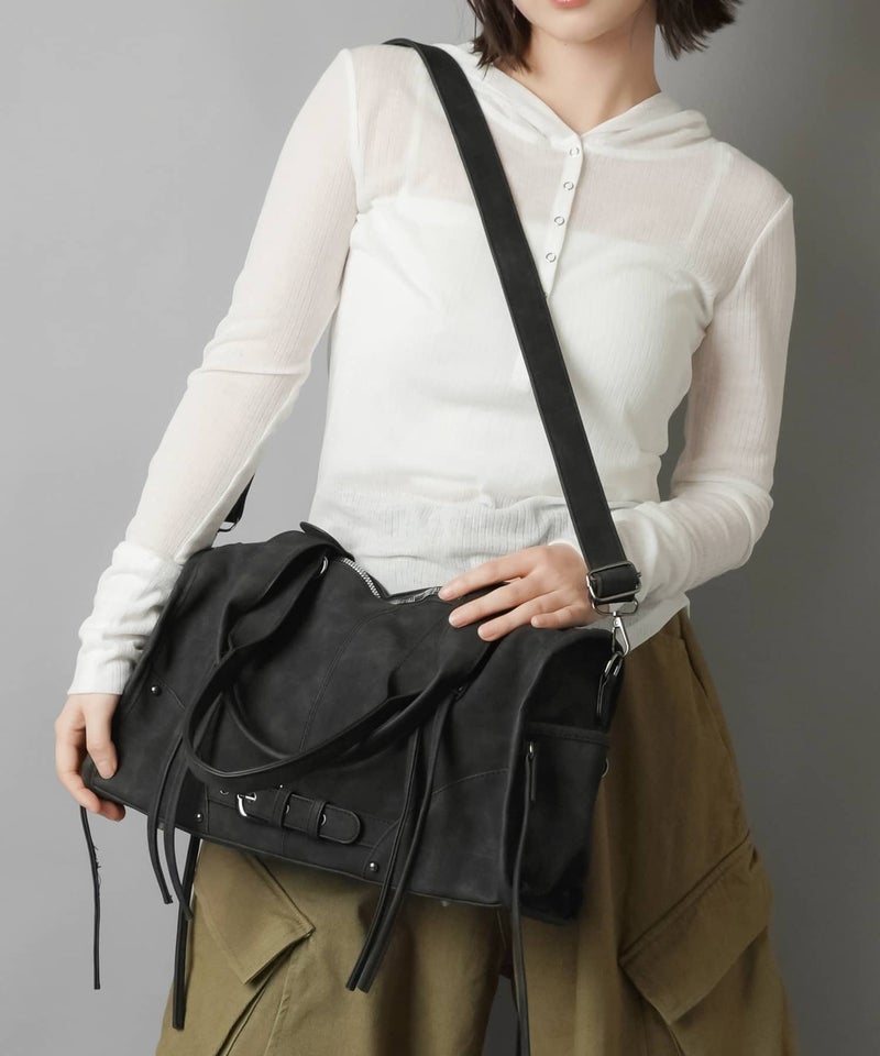 A4サイズ収納可 2WAY合皮ショルダーバッグ/ハンドバッグ/ハトメベルト/#ロマンスパンク