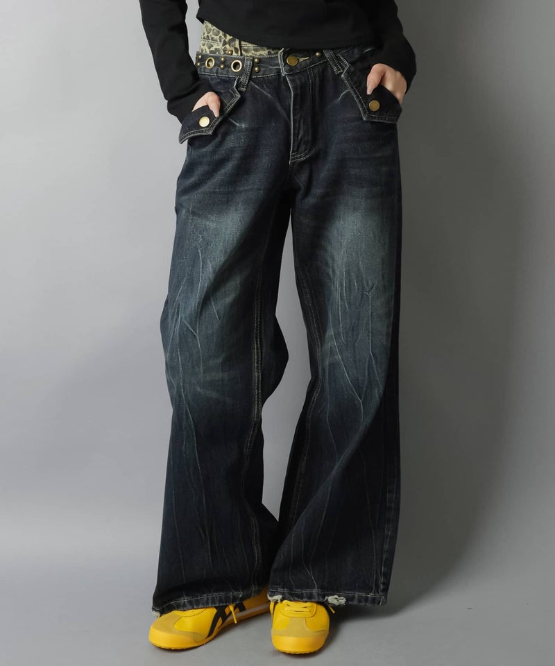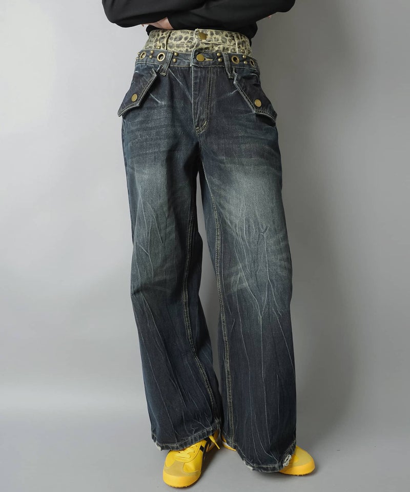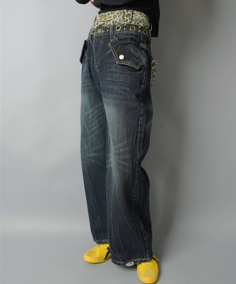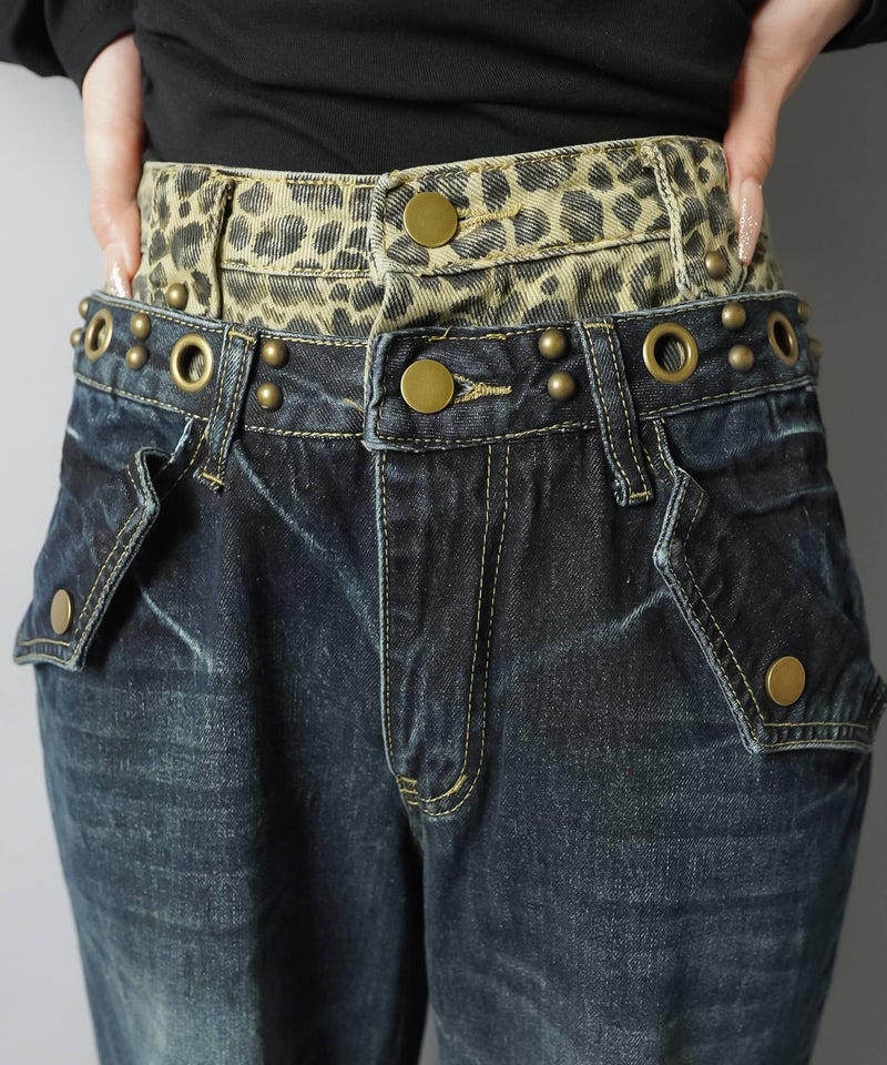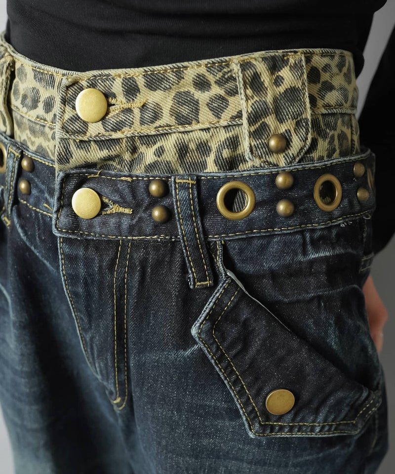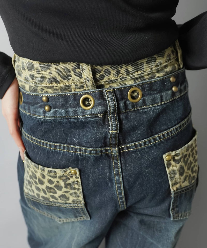 レイヤード風ワイドパンツ/ヒョウ柄/ウエスト見せ/#バディガール