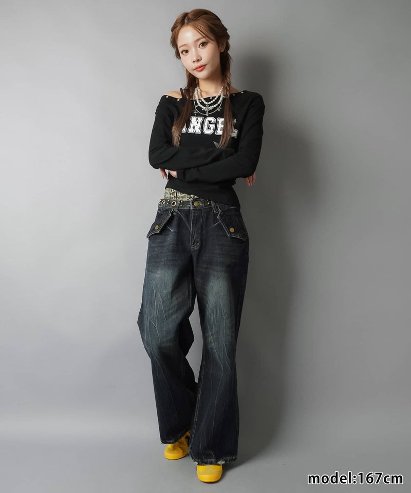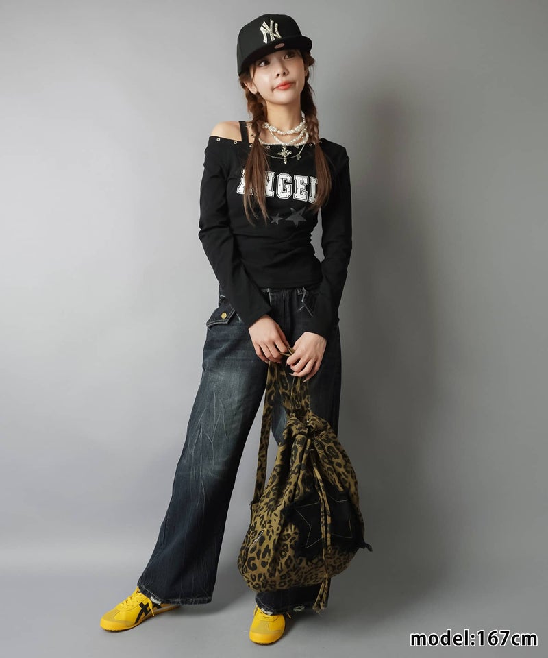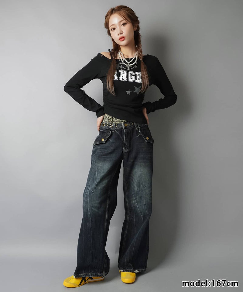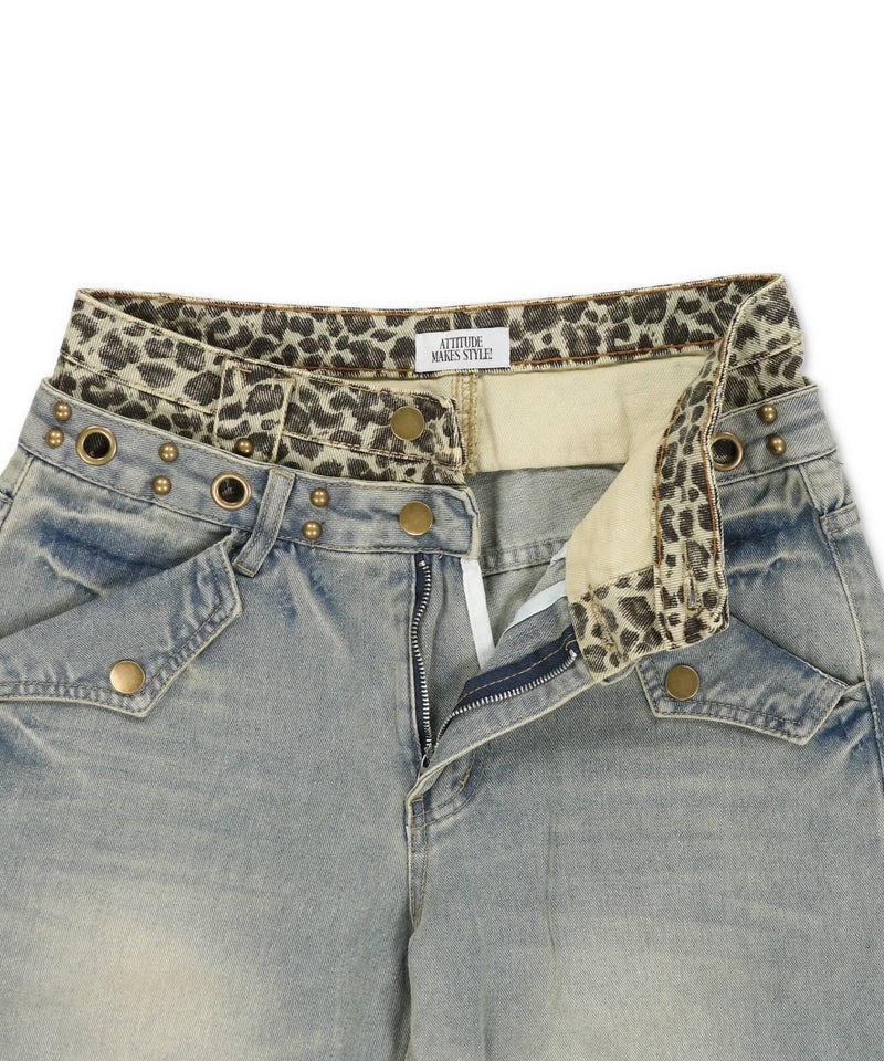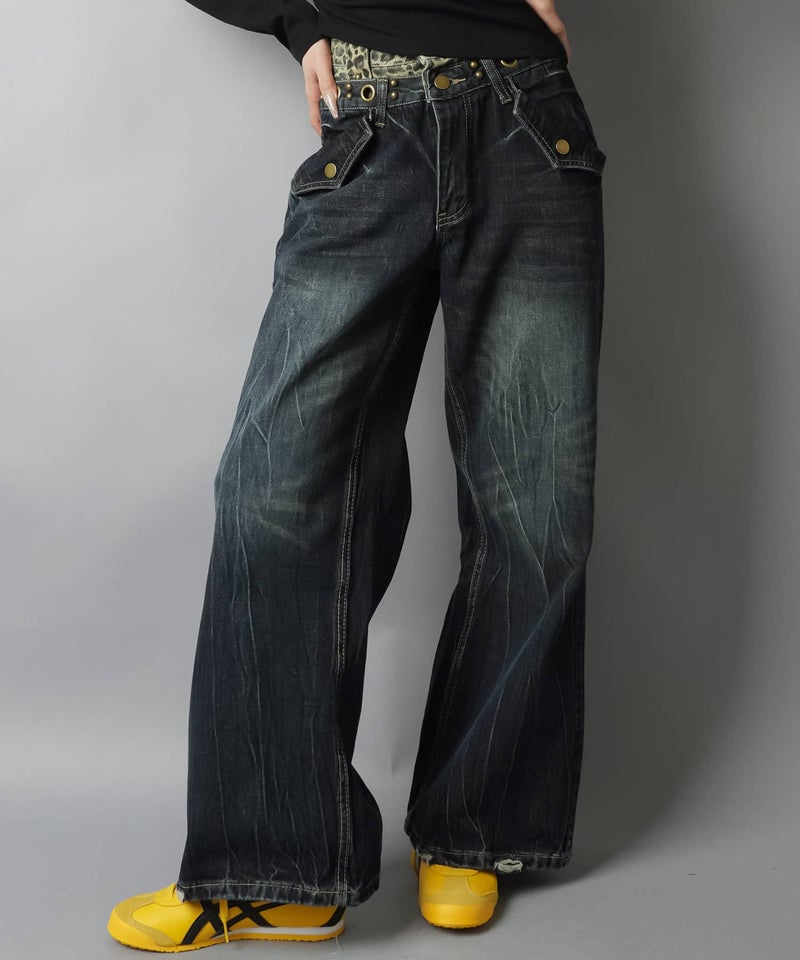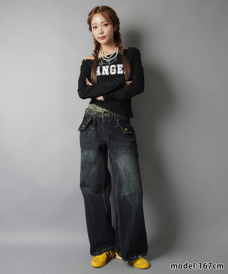 レイヤード風ワイドパンツ/ヒョウ柄/ウエスト見せ/#バディガール