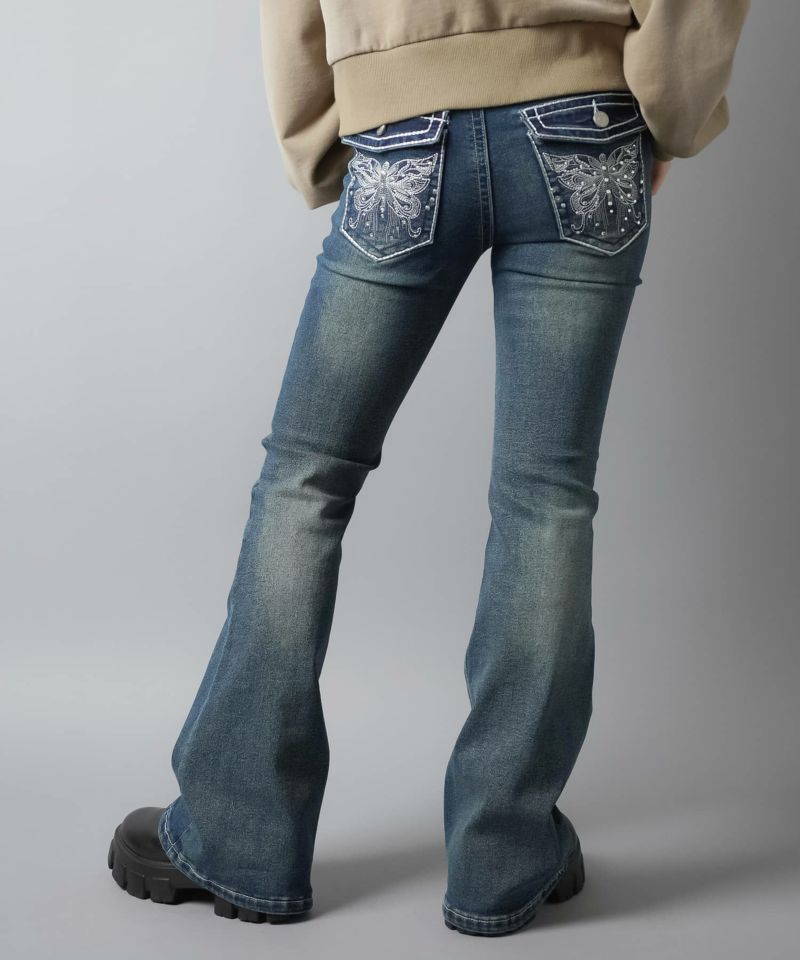 【ギャルがリバイバル⁉ギャルっぽ☆蝶々ラインストーンデニムパンツ】