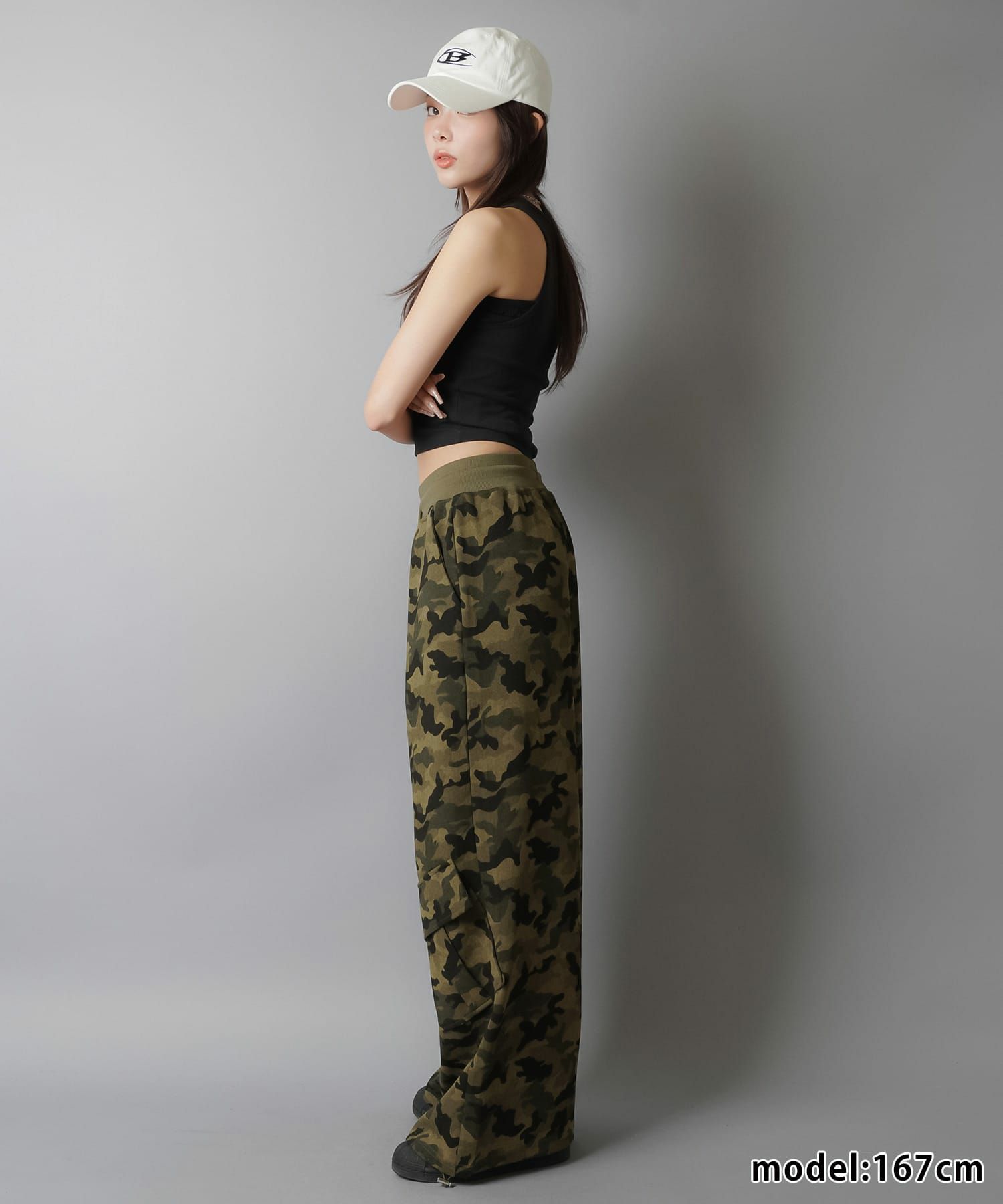 裏毛ワイドスウェットパンツ/迷彩柄/カモ柄