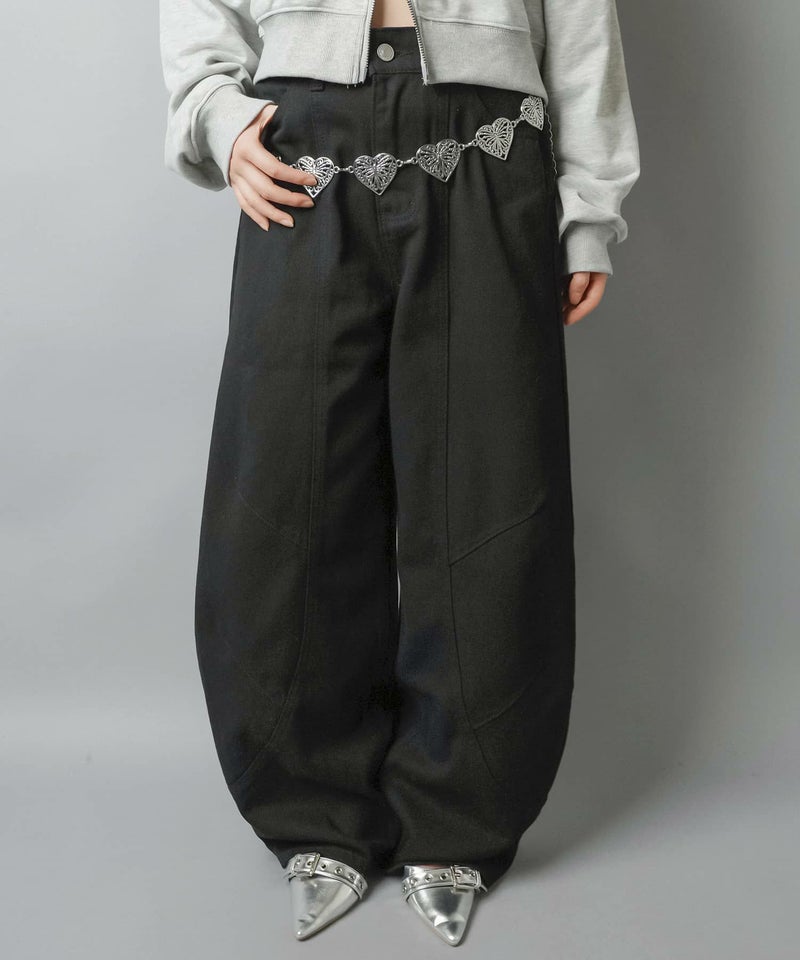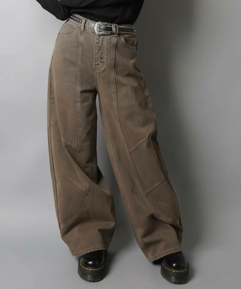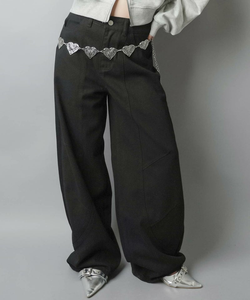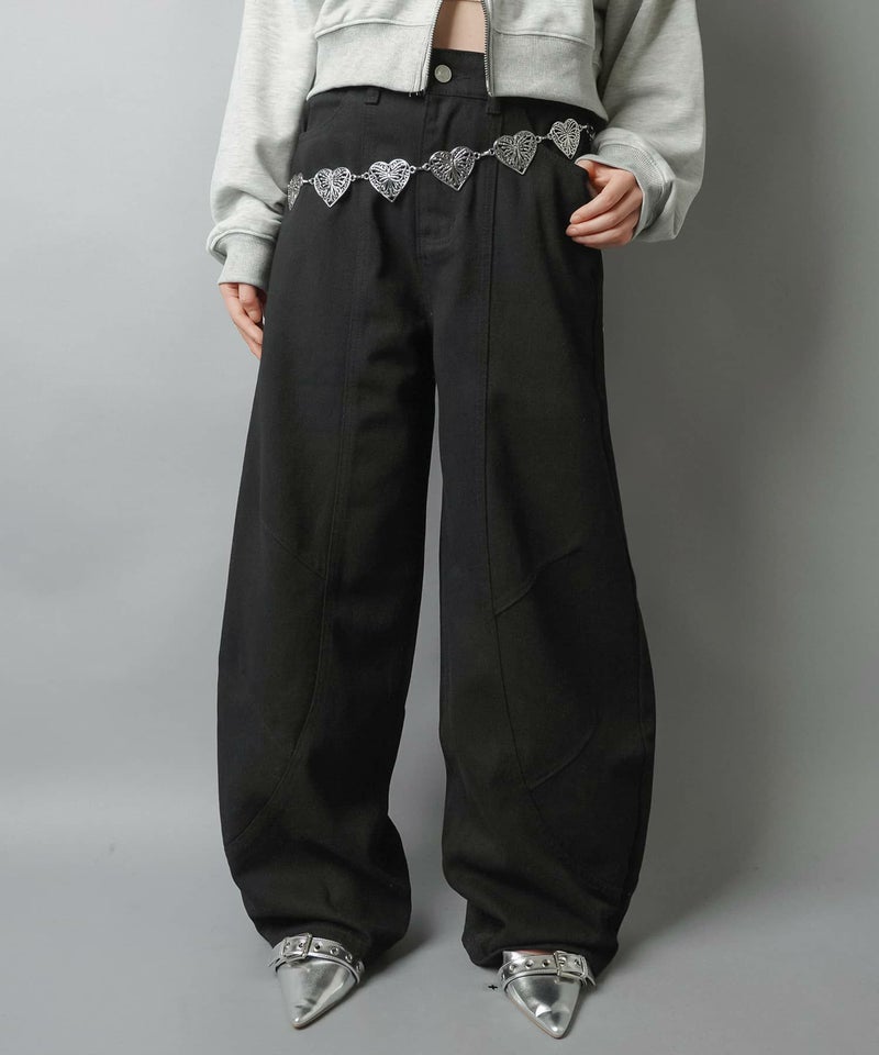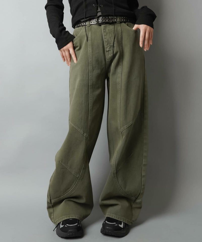 2:裾に溜まるボリューム感があるパンツでタイトなトップスとの相性抜群