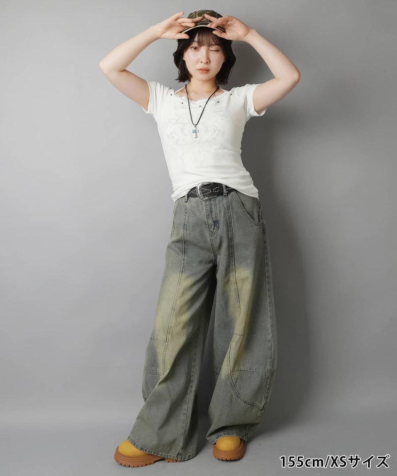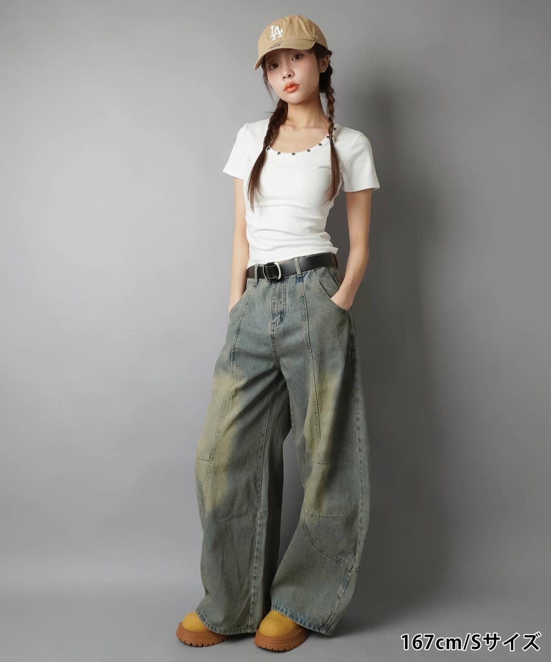ウォッシュ加工がこなれたムードをプラス。シンプルトップスを合わせるだけでおしゃれ。