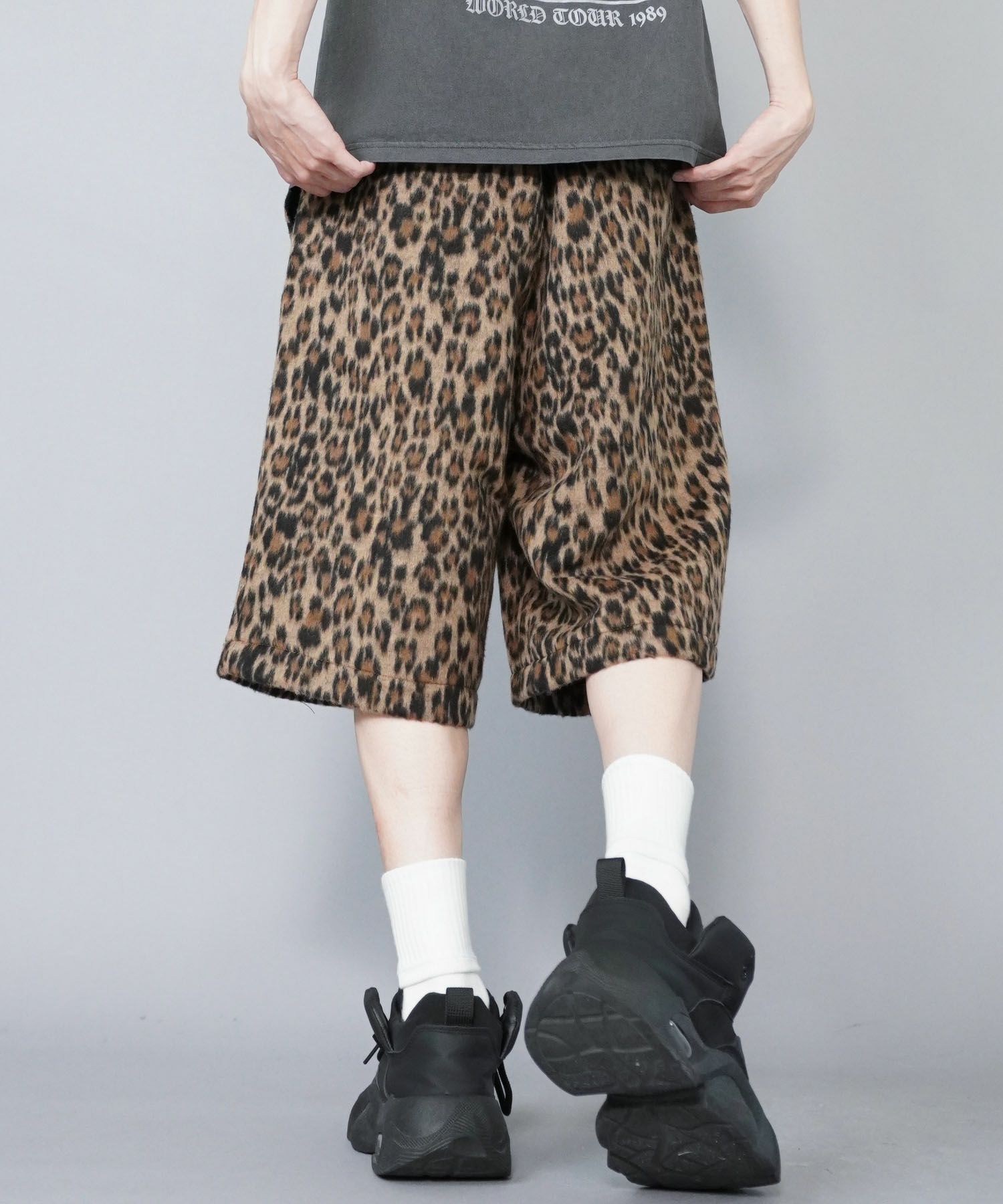 ストリート感漂うレオパード柄が主役のシャギーハーフパンツ。