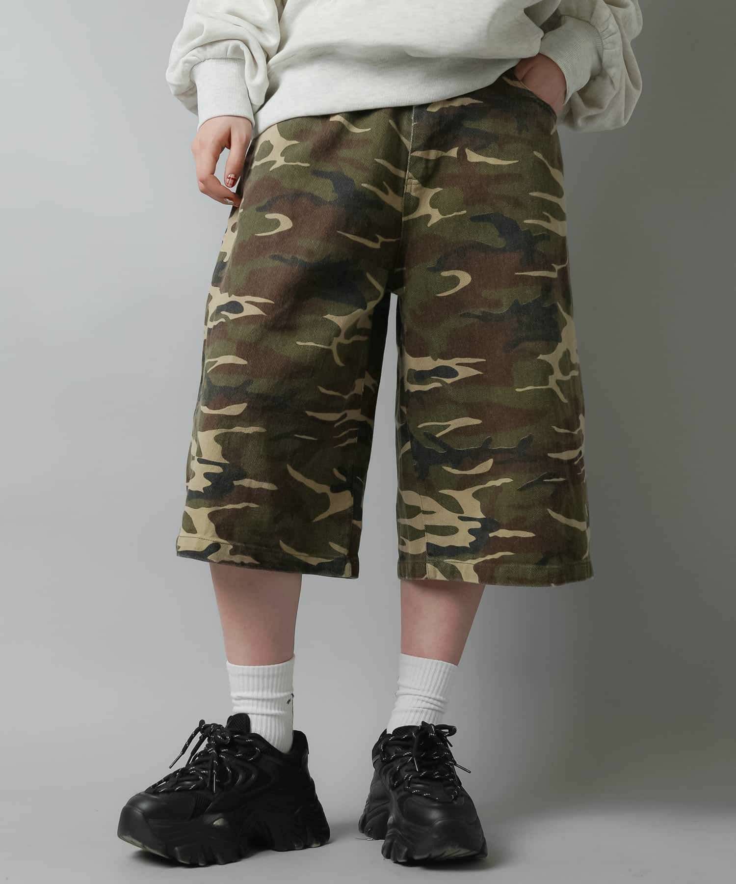 【72%OFF】ツイルハーフパンツ/ヒョウ柄/カモ柄