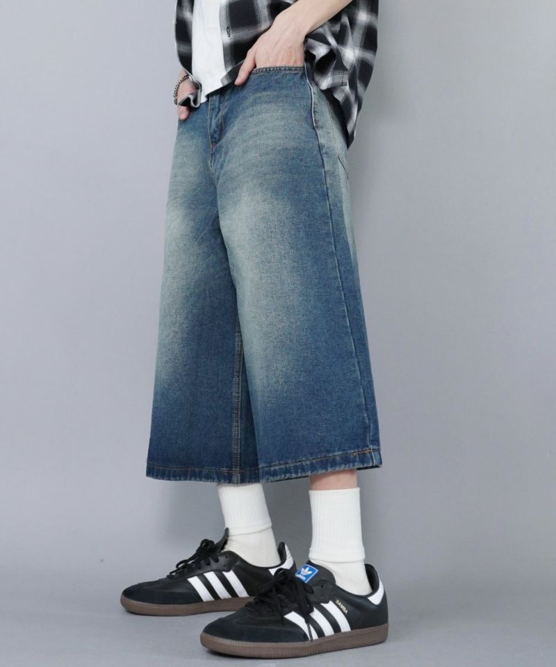 絶妙な色落ちと風合いが魅力のヴィンテージ加工デニムハーフパンツ。