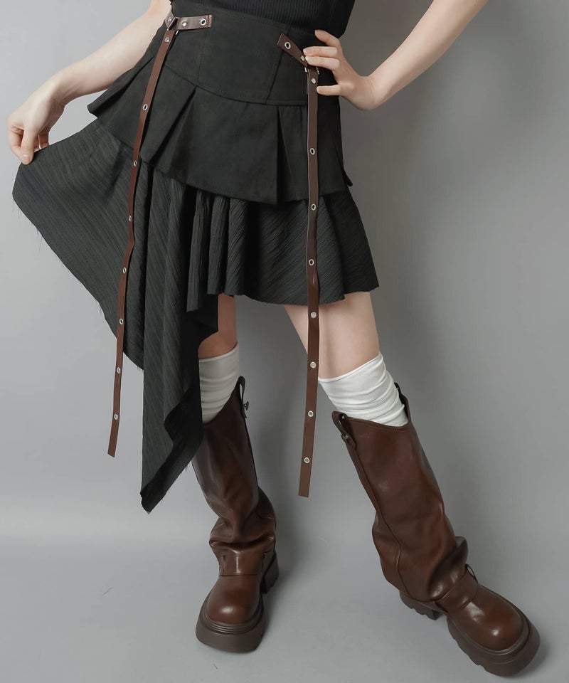 2:ベルトがついていたりイレヘムのデザイン性のあるスカート