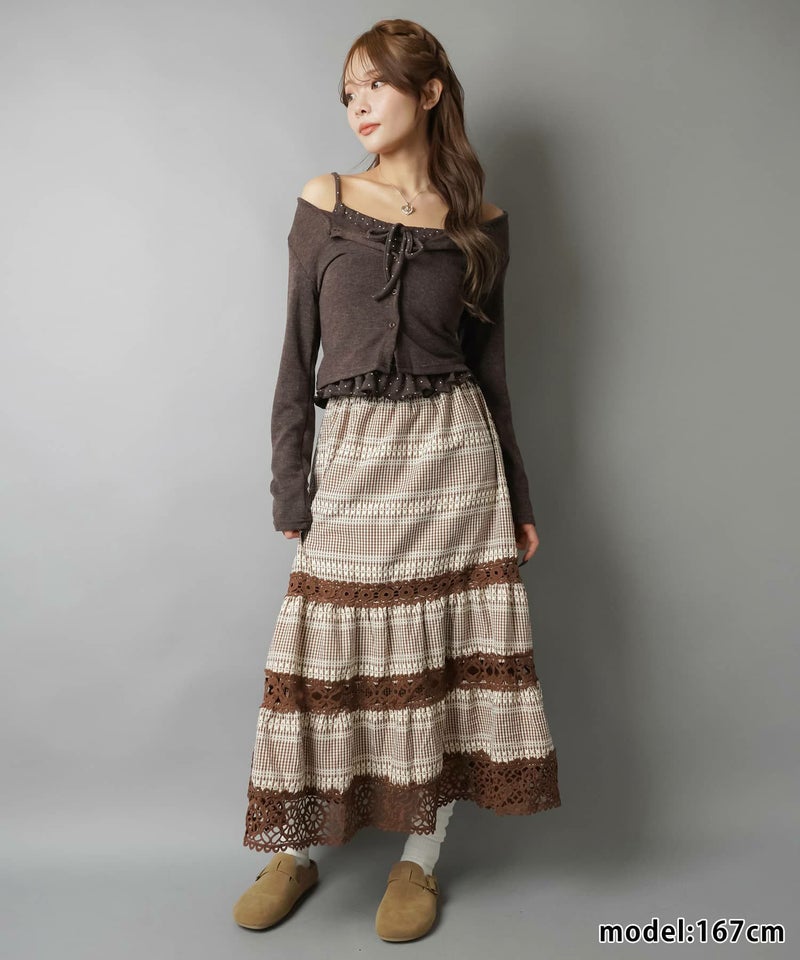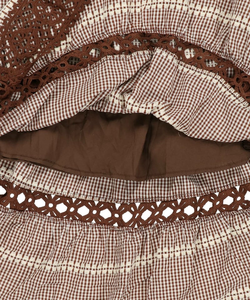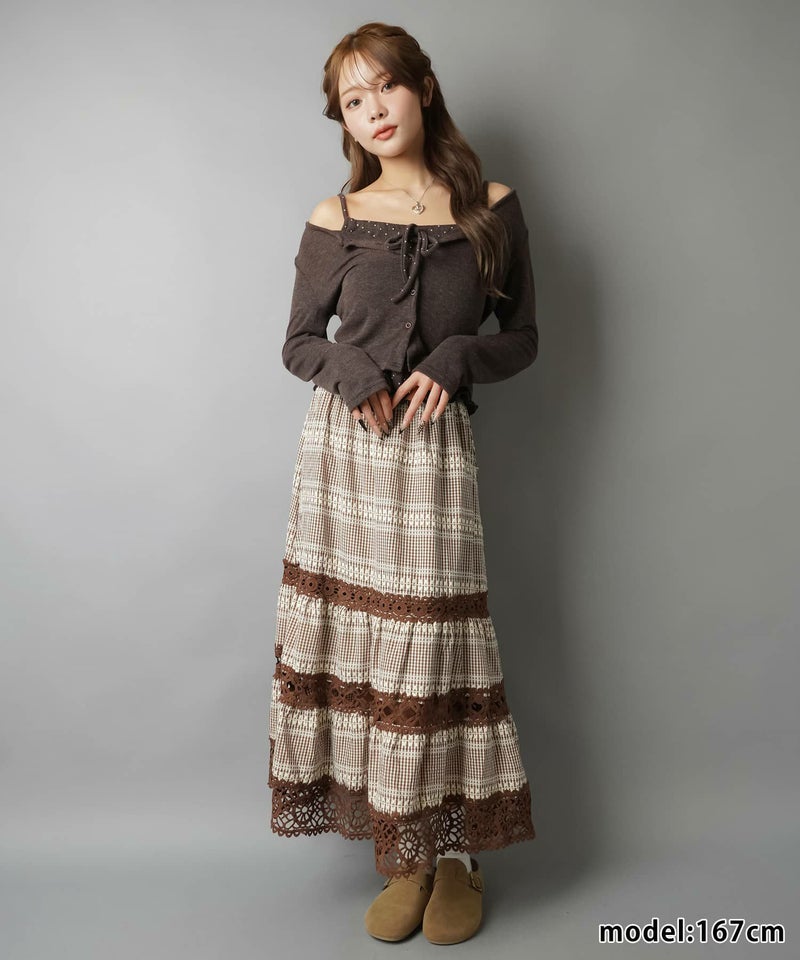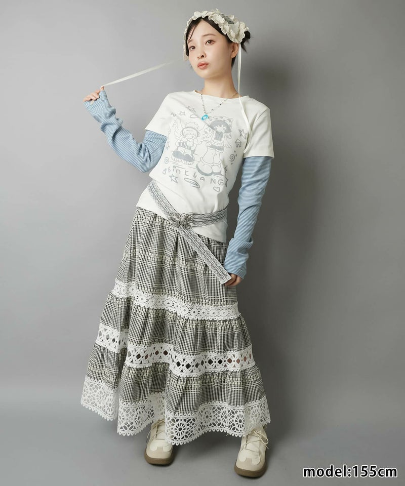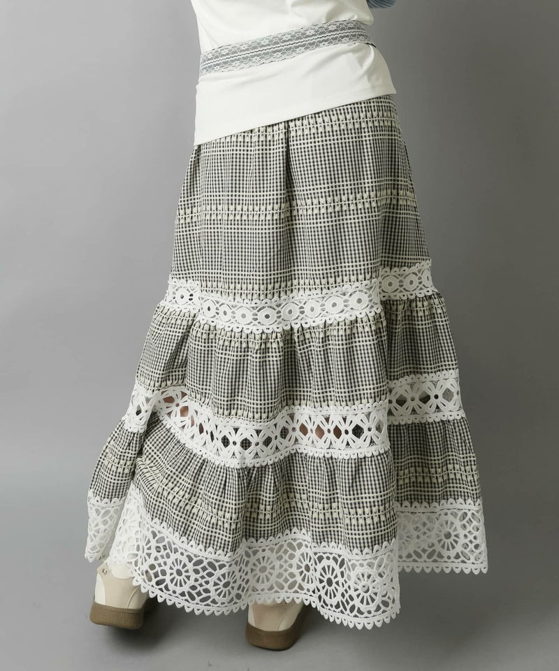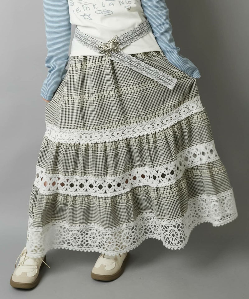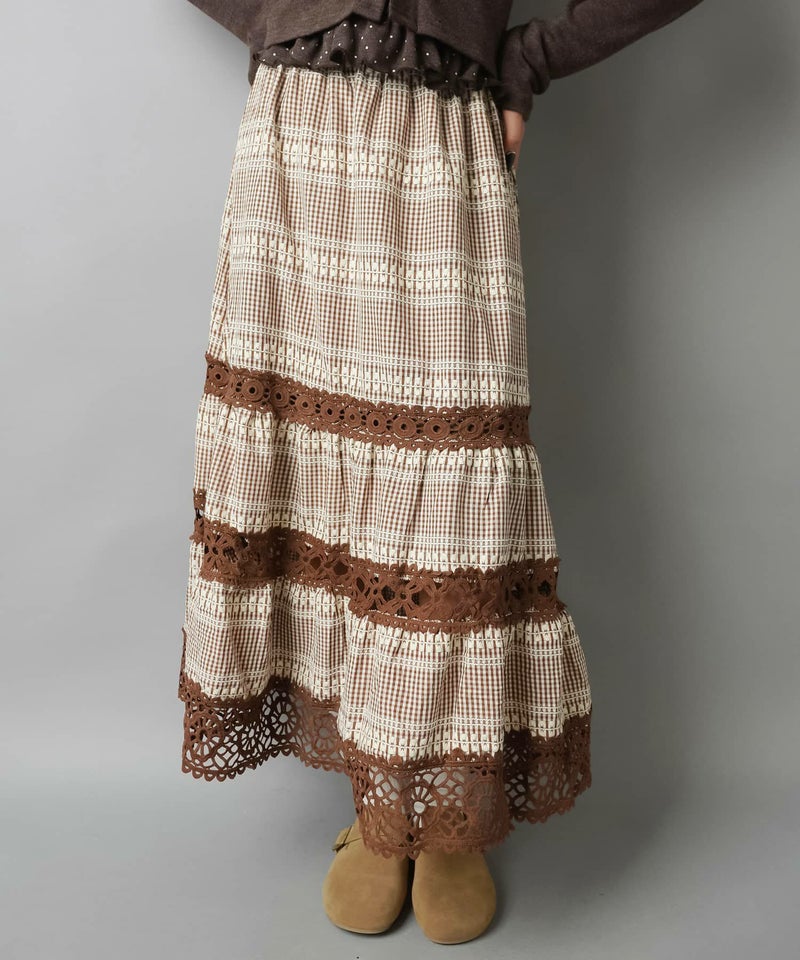 【レトロな雰囲気が可愛い♡レース×チェックの異素材ロングスカート】
